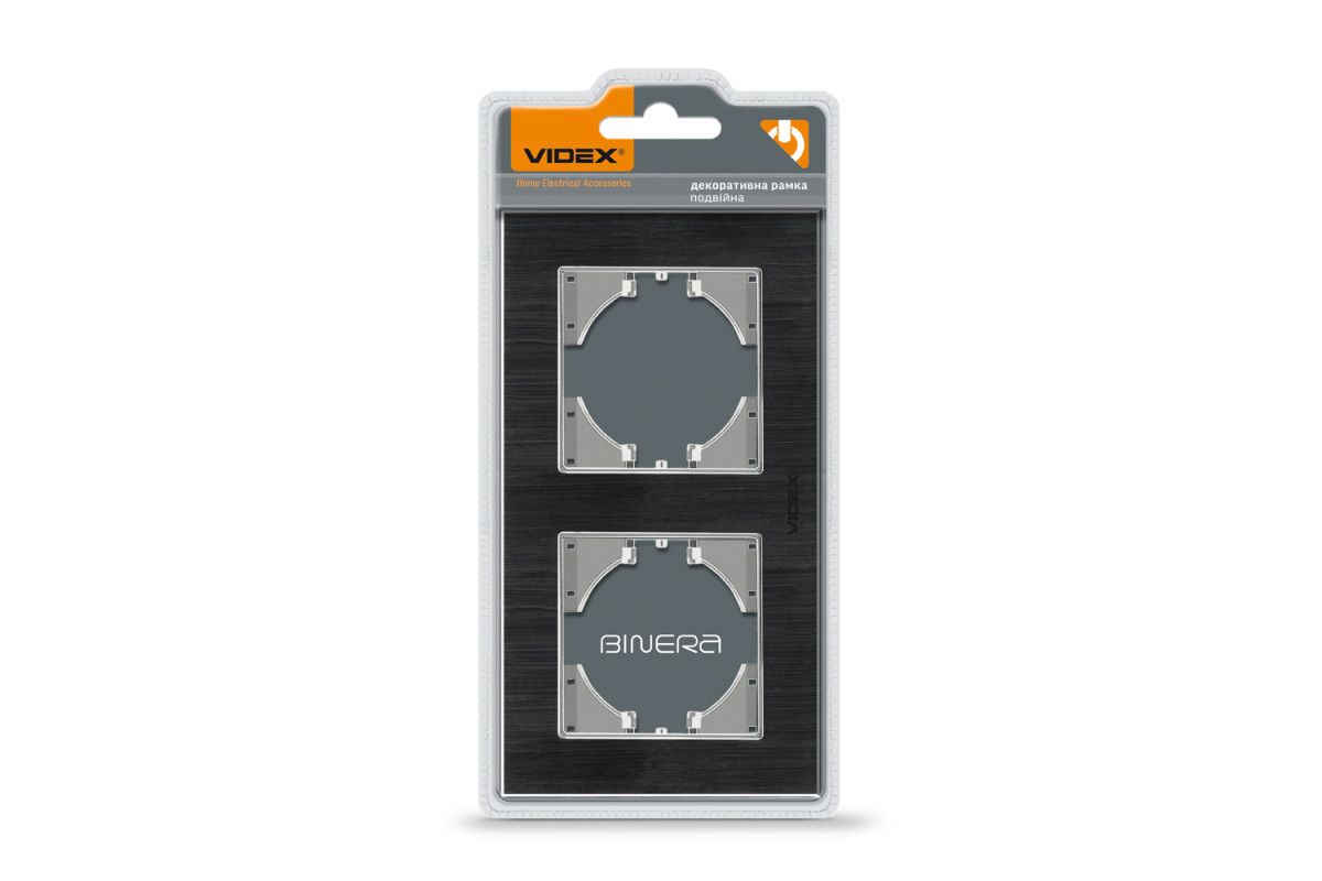 Рамка чорний алюміній на 2 місця горизонтальна VIDEX BINERA