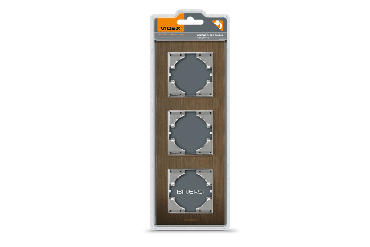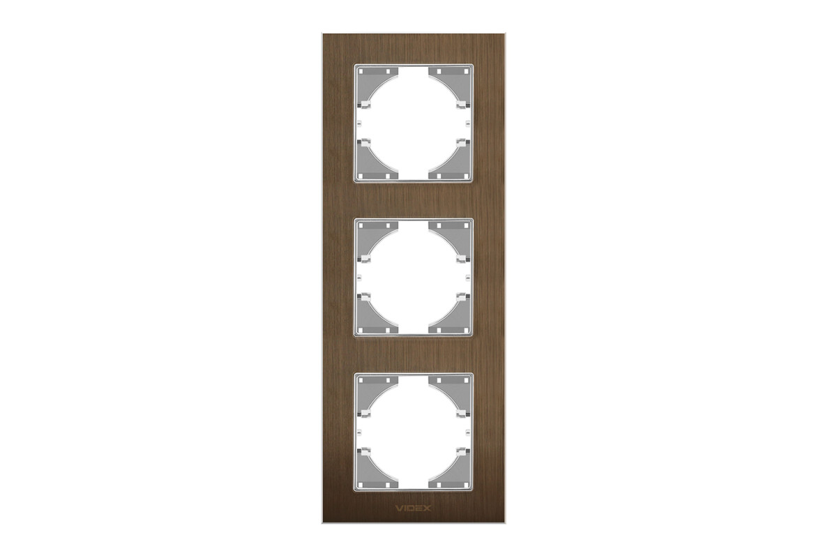 Рамка шоколадний алюміній на 3 місця вертикальна VIDEX BINERA