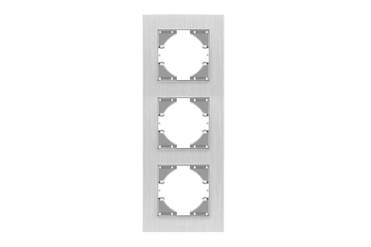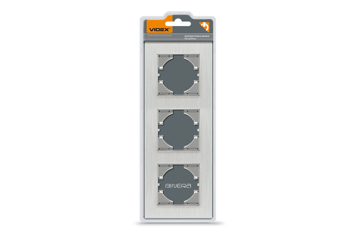 Рамка срібний алюміній на 3 місця вертикальна VIDEX BINERA