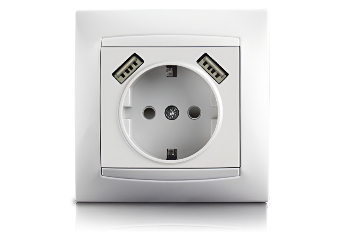 Розетка 1-на з заземленням + гнізда 2 USB LEMANSO Сакура біла LMR1039