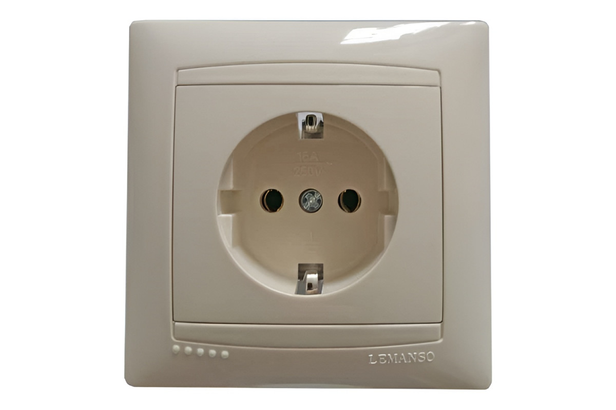 Розетка кераміка 1-на з заземленням LEMANSO Сакура крем LMR1116