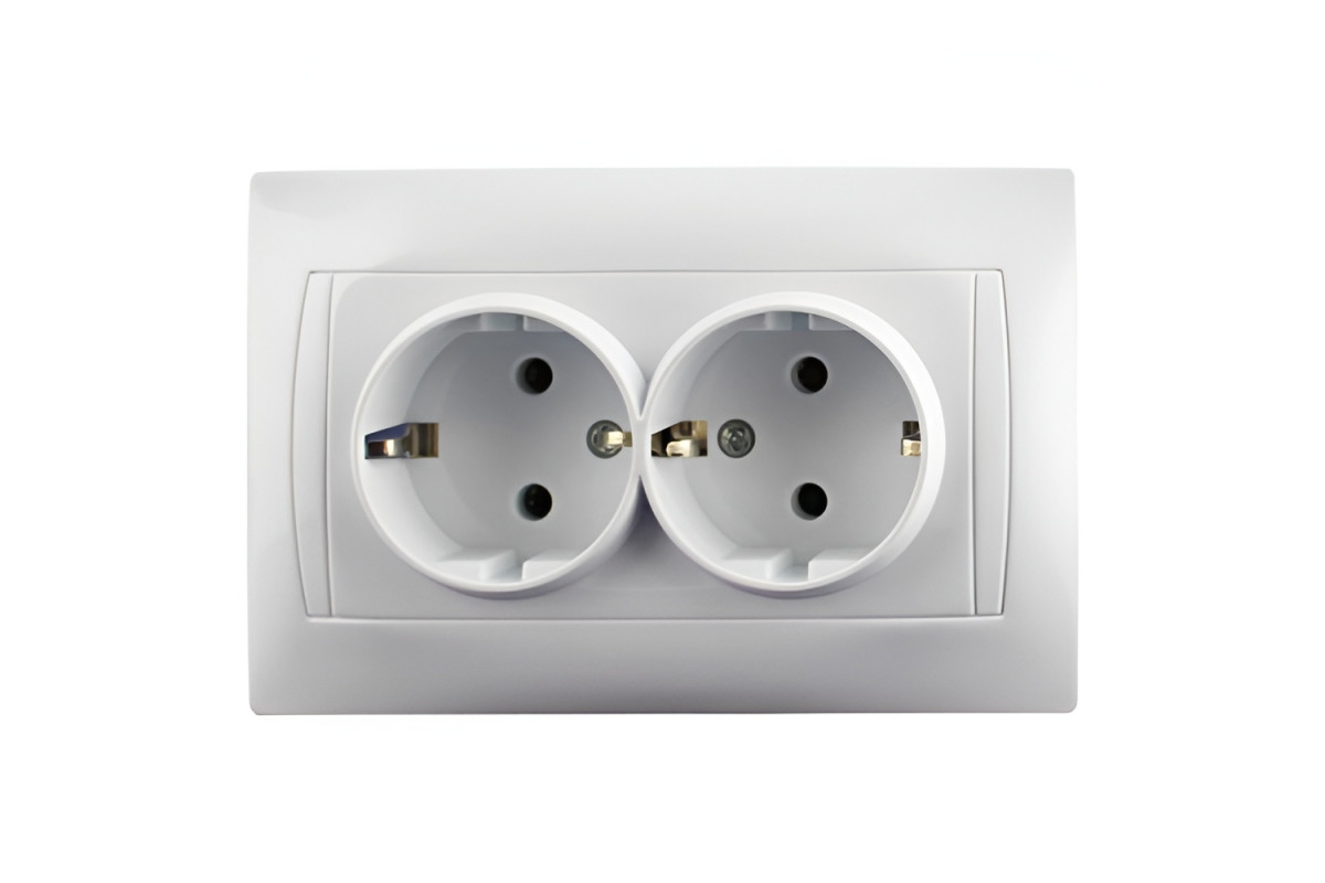 Розетка кераміка 2-на з заземленням LEMANSO Сакура біла LMR1018