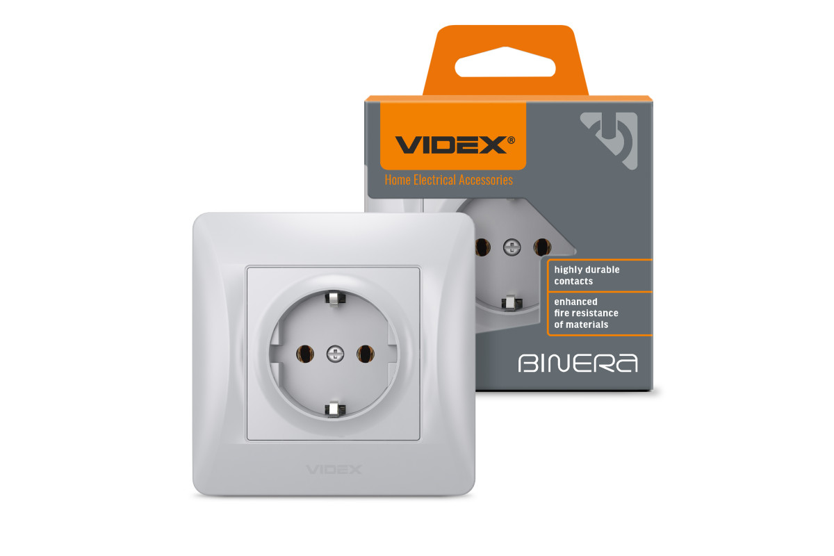❓ Хто виробник Розетка одинарна із заземленням срібний шовк VIDEX BINERA?