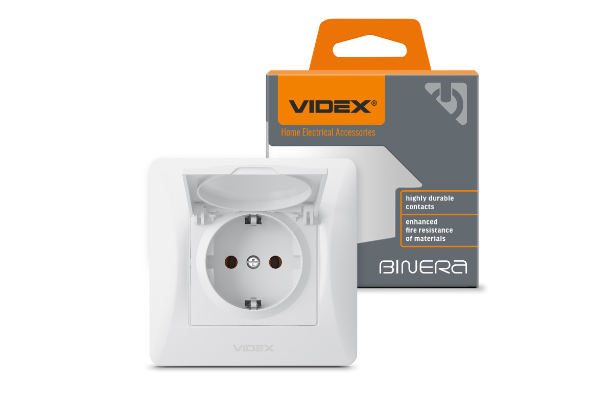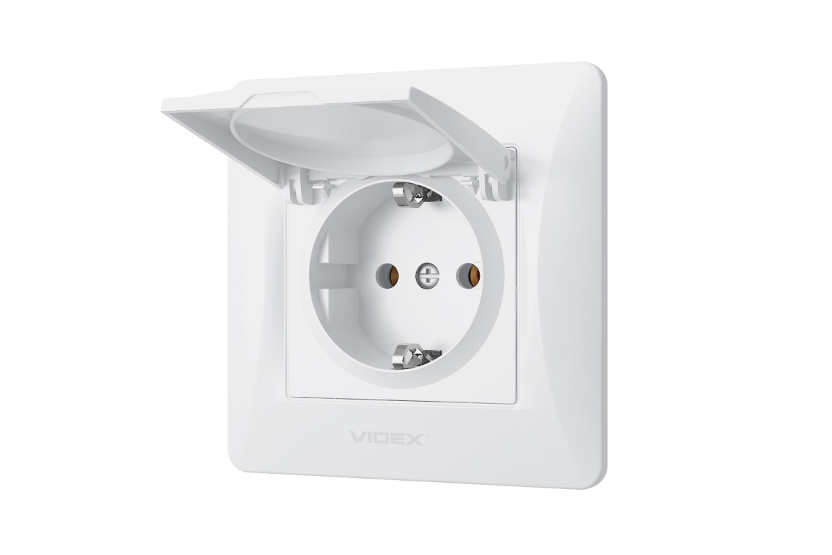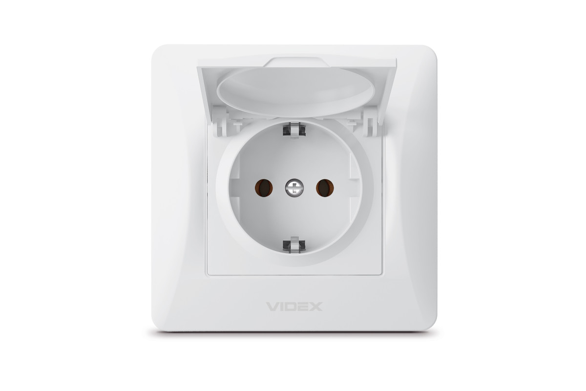 Розетка одинарна із заземленням та кришкою біла VIDEX BINERA