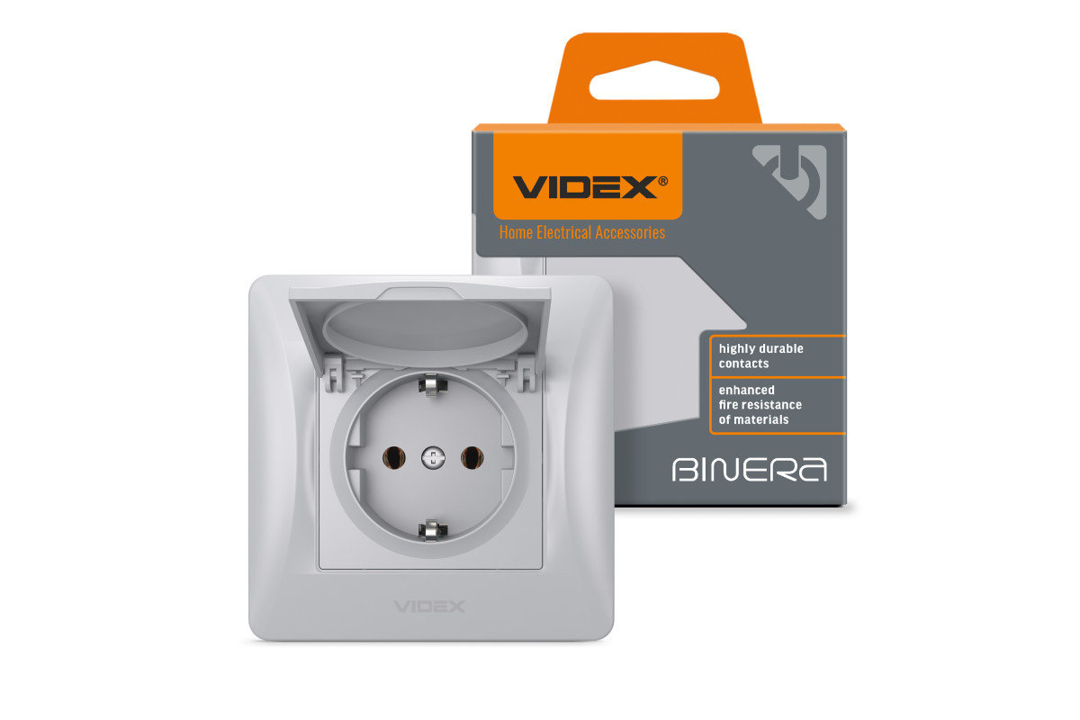 ❓ Хто виробник Розетка одинарна із заземленням та кришкою срібний шовк VIDEX BINERA?