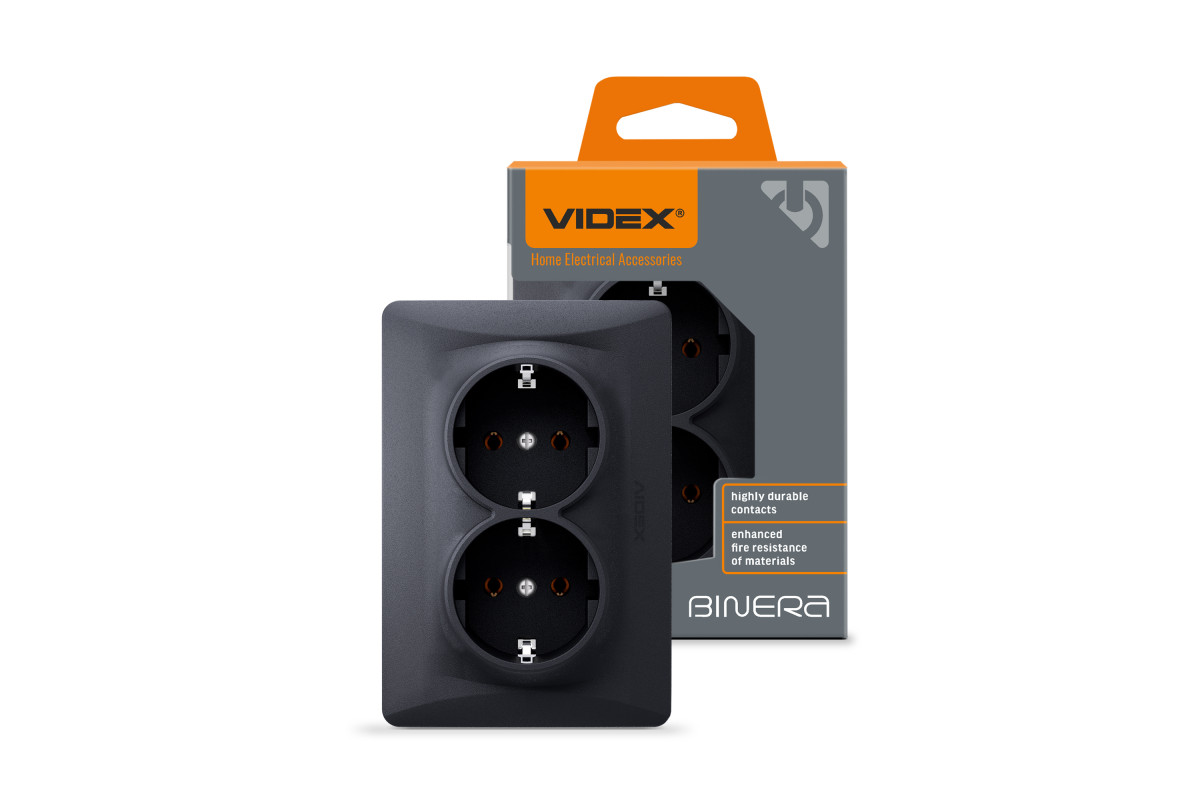 ❓ Хто виробник Розетка подвійна із заземленням чорний графіт VIDEX BINERA?