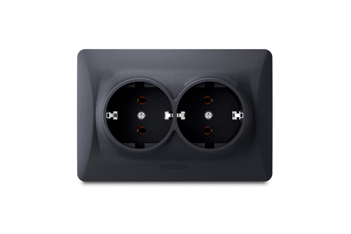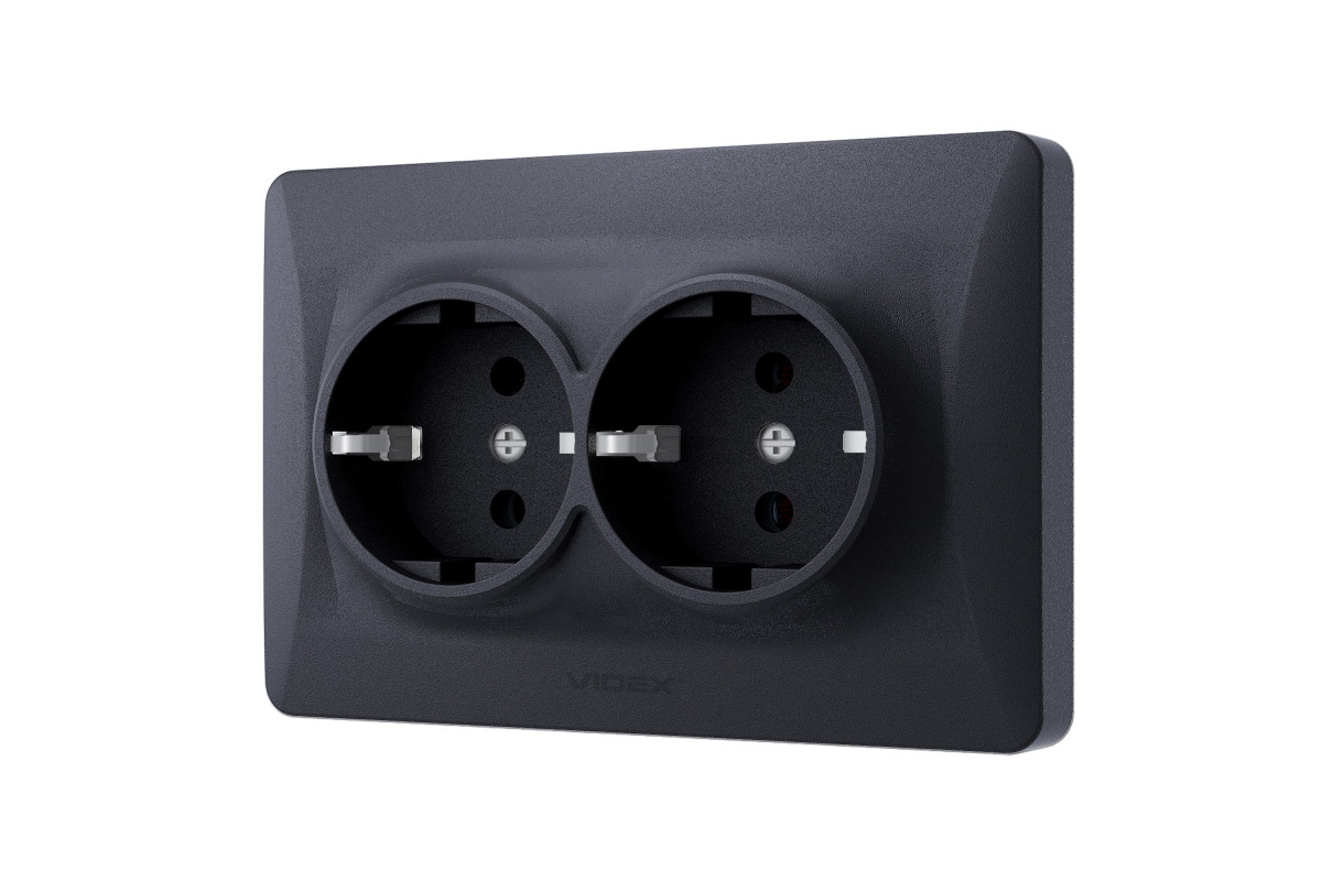 Розетка подвійна із заземленням чорний графіт VIDEX BINERA