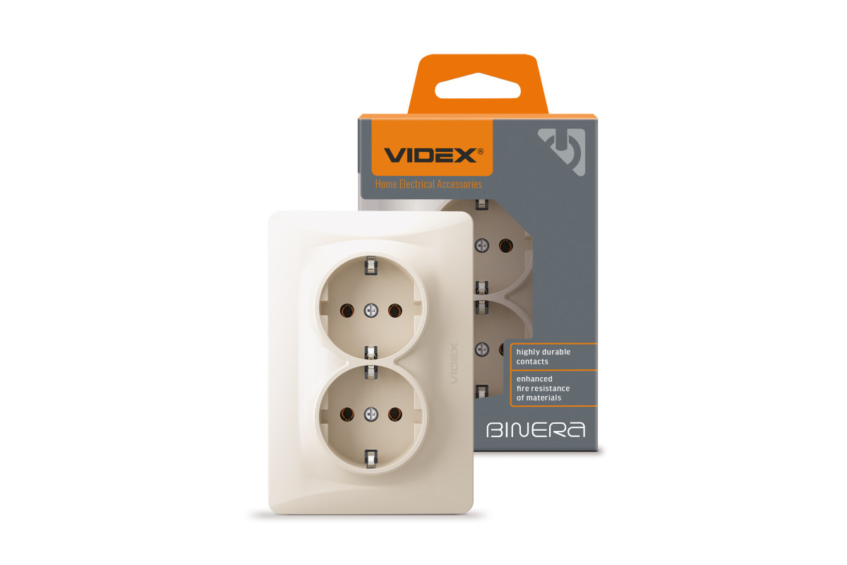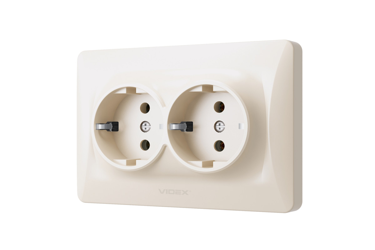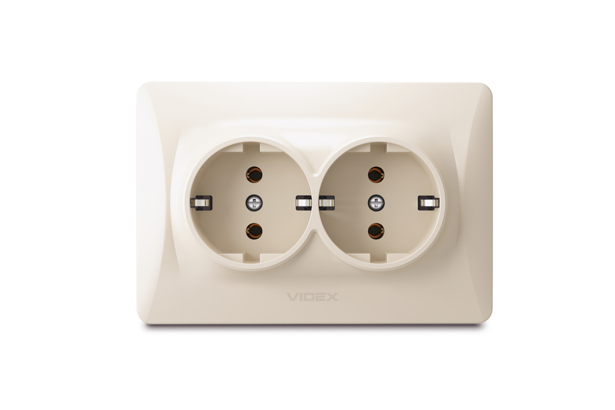 Розетка подвійна із заземленням кремова VIDEX BINERA