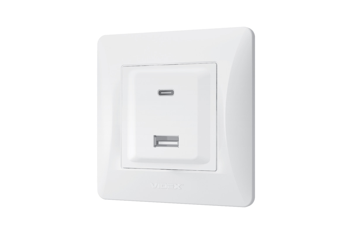 Розетка USB-A + USB-C PD20W біла VIDEX BINERA