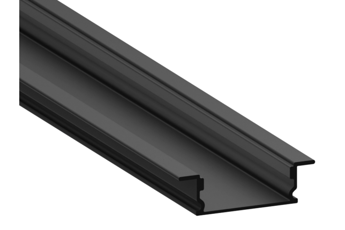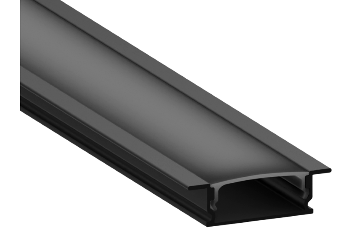 Алюминиевый профиль для светодиодной ленты АЛ-94 2 метра черный профиль, черный врезной диффузор «Местами деформация» LEDUA