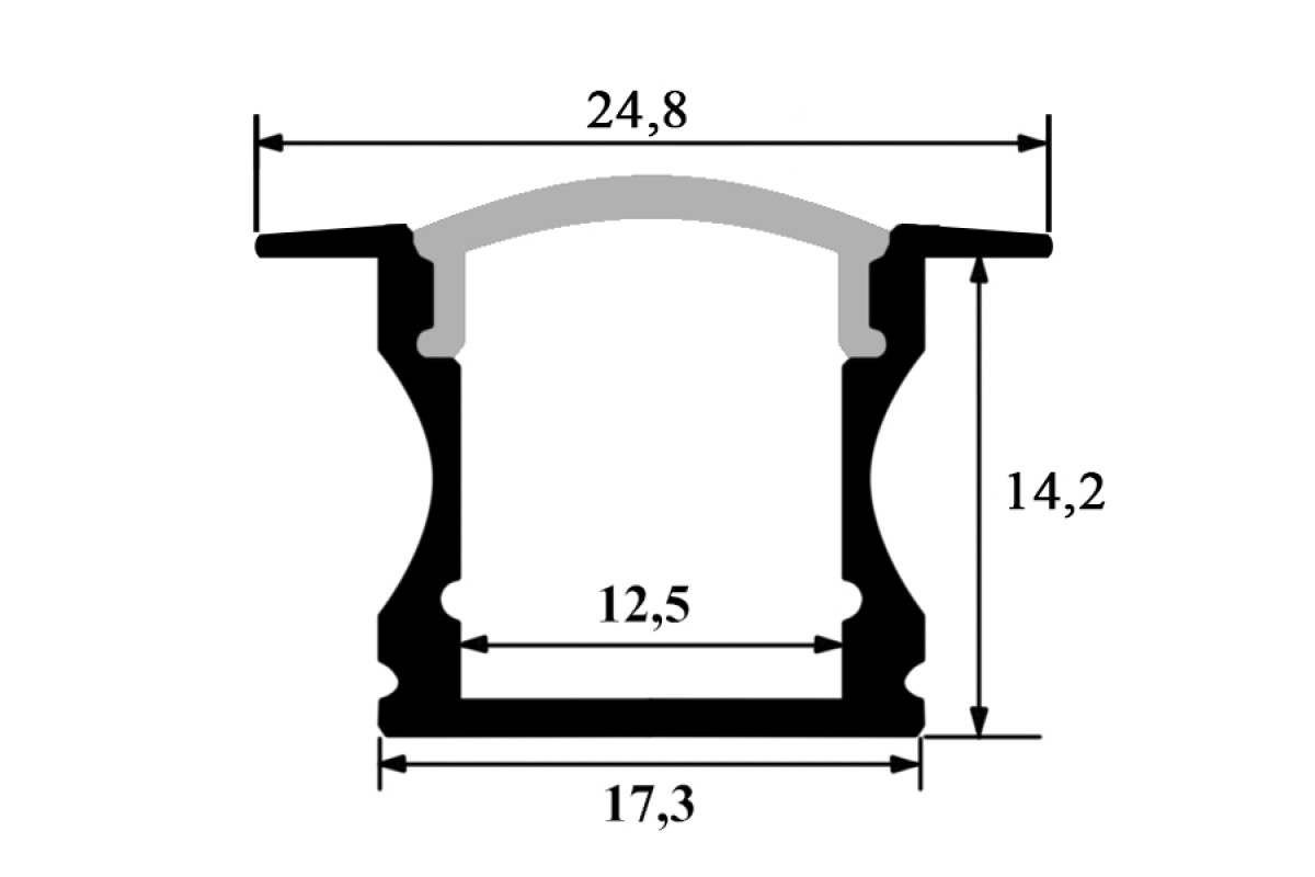 Профиль алюминиевый анодированный LEDUA АЛ-03 + рассеиватель для LED ленты врезной 2 м