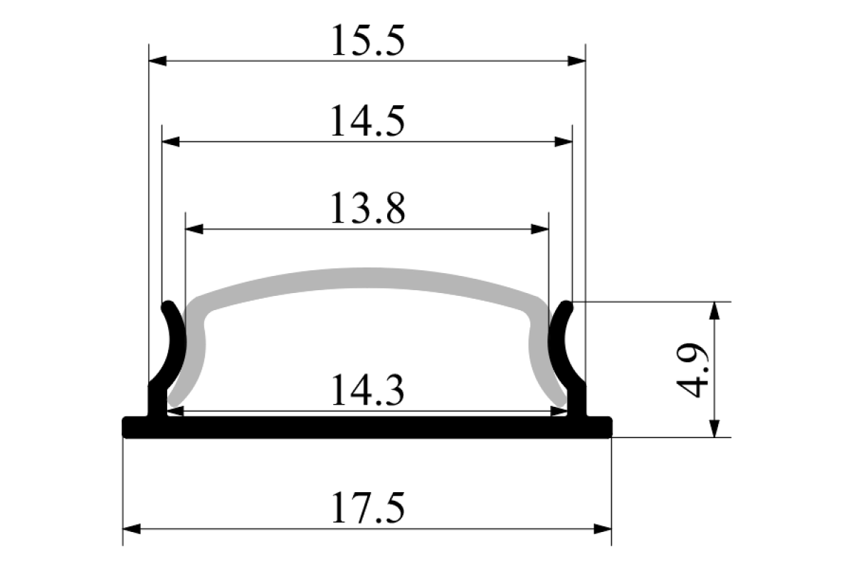 Профиль алюминиевый анодированный LEDUA АЛ-14 + рассеиватель для LED ленты гибкий накладной 2 м
