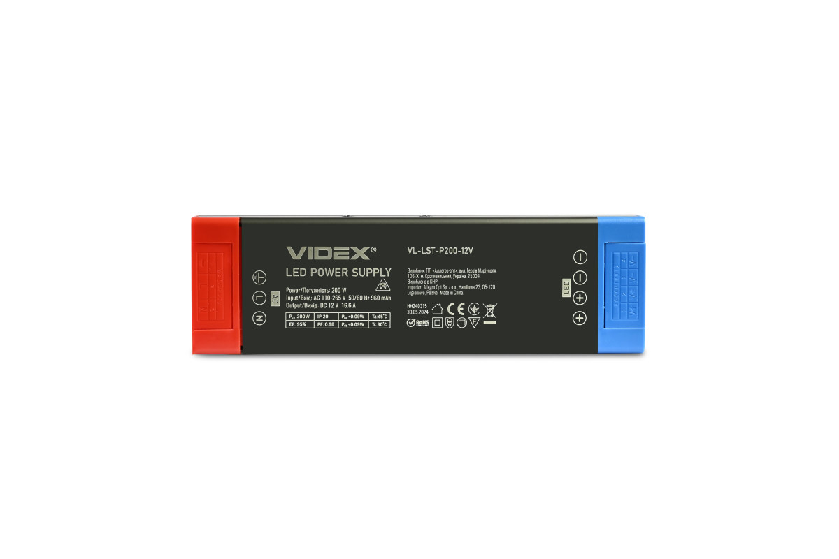 ❓ Кто производитель Блок питания для LED ленты VIDEX DC12V 16.6A 200W IP20 (VL-LST-P200-12V)?
