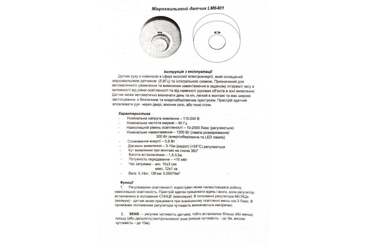 ❓ Как заказать Датчик движения микроволновой 360° белый 110-240V LM6401 Лемансо с доставкой?