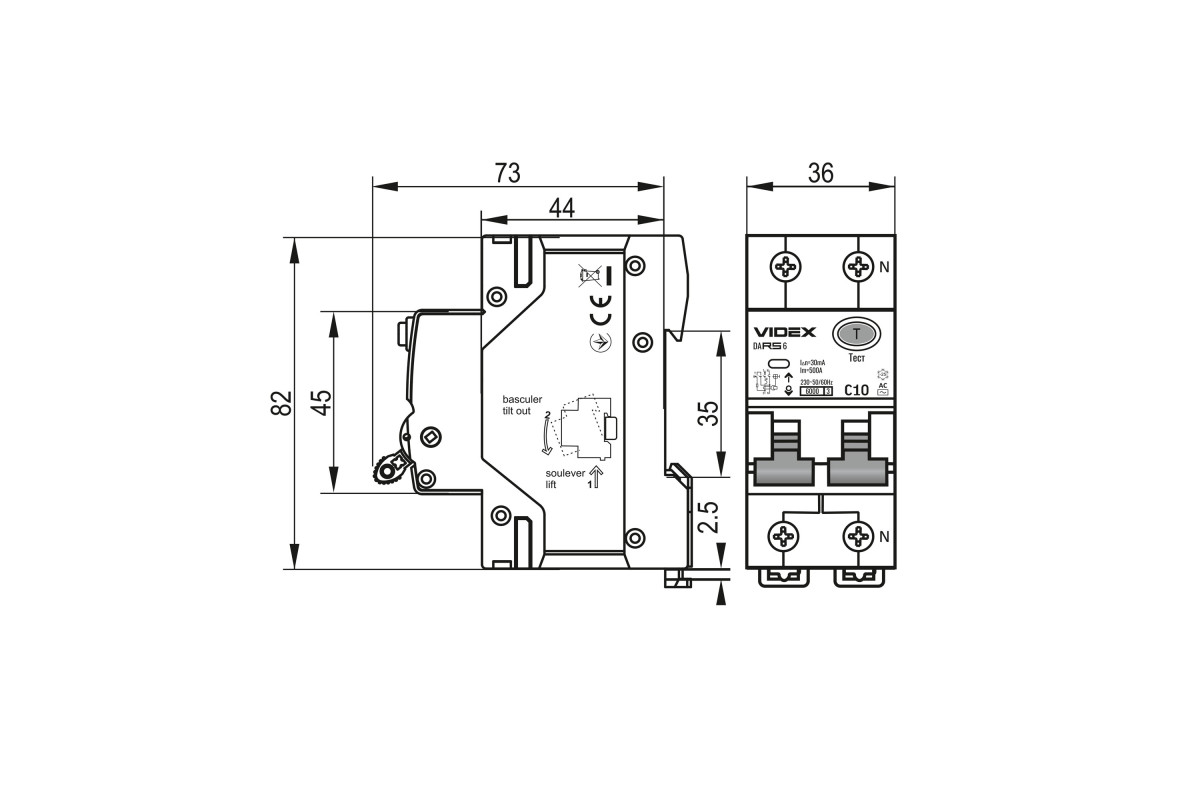 Дифференциальный автомат VIDEX RESIST АС 2п 30мА 6кА 32А