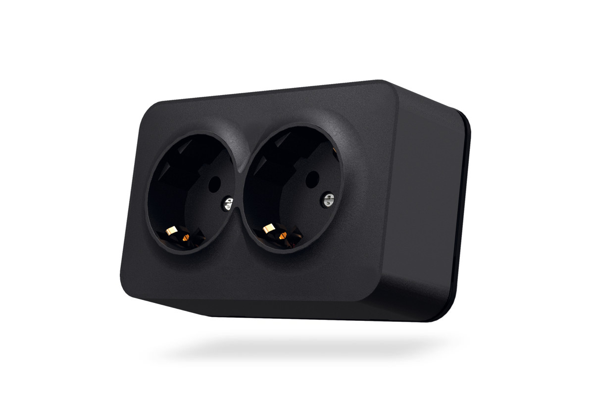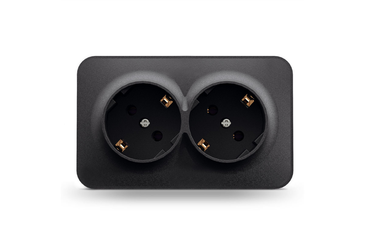 IP20 Розетка наружная двойная с заземлением черный графит VIDEX BINERA