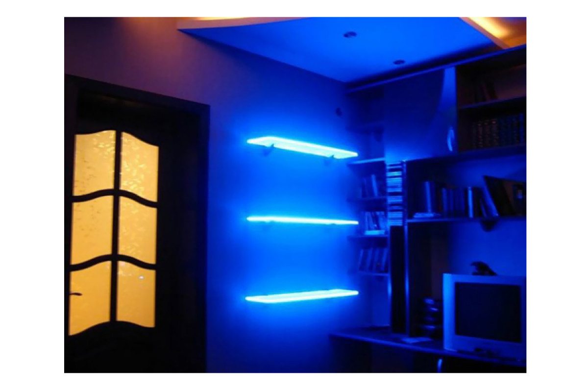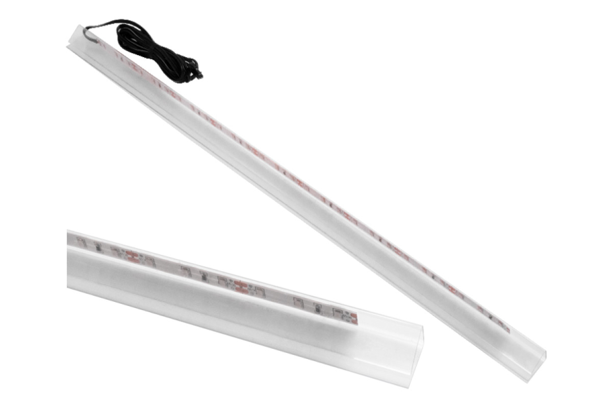 - Клипса светодиодная пластиковая для подсветки стеклянных полок 12V/DC 4,8w 510мм, нейтрально белый свет, белый провод.