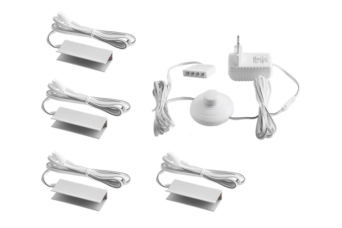 Комплект светодиодных клипс алюминиевых LEDUA для подсветки стеклянных полок 4шт 220В белый
