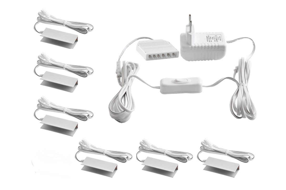 Комплект светодиодных клипс алюминиевых LEDUA для подсветки стеклянных полок 6шт 220В белый