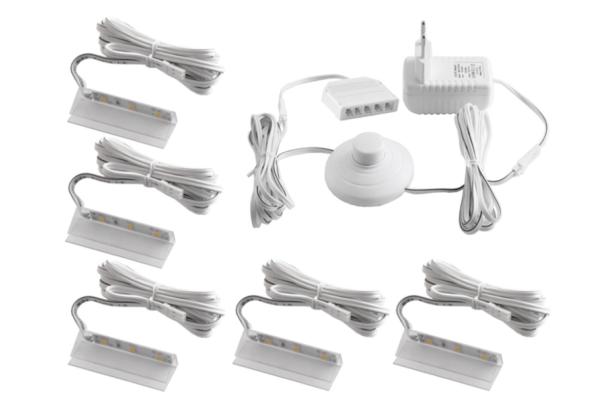 Комплект светодиодных клипс пластиковых LEDUA для подсветки стеклянных полок 5шт 110-240В белый