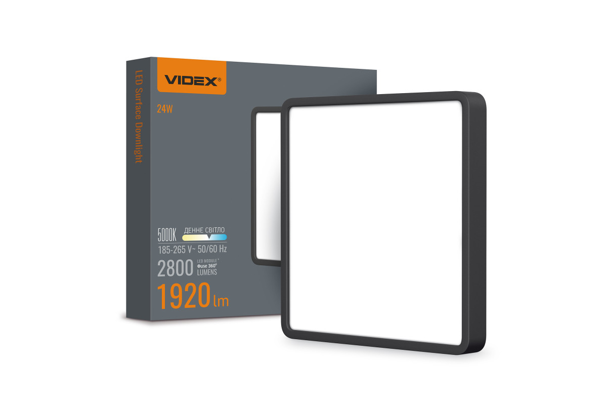 LED светильник накладной квадрат VIDEX 24W 5000K Black