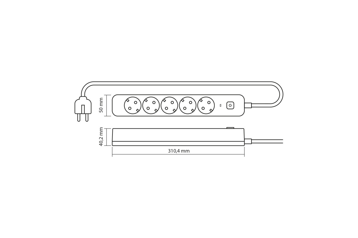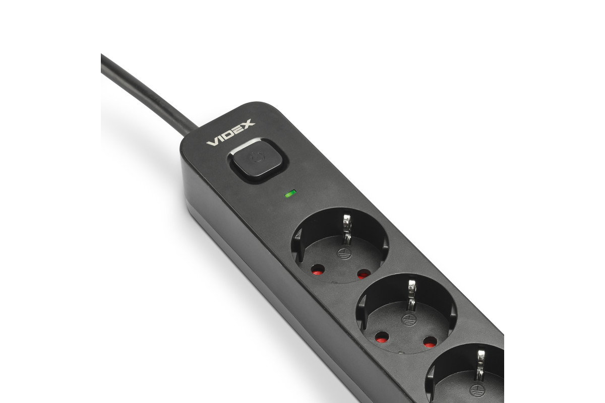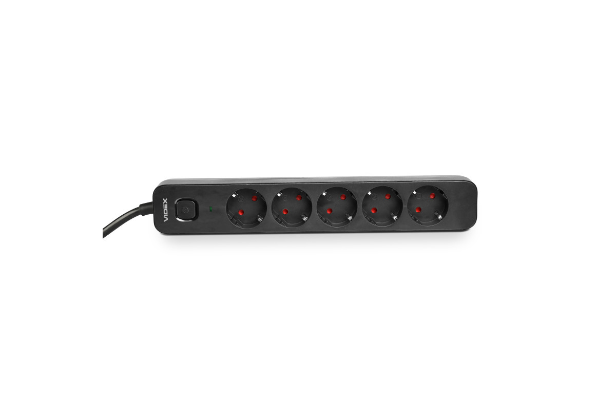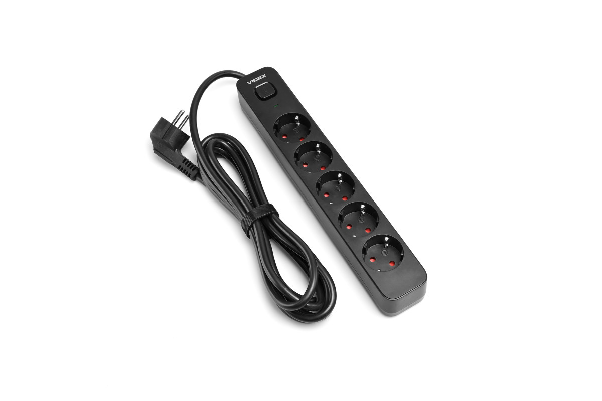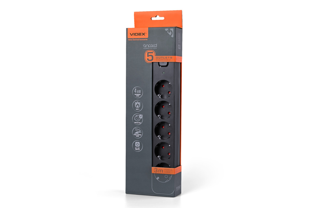 Сетевой удлинитель VIDEX ONCORD с выключателем 5 розеток 3 м Черный (VF-PD53G-B)