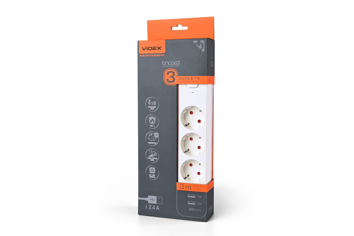 ❓ Кто производитель Мережевий подовжувач VIDEX ONCORD з/з 3п 3м (3x1.5мм) 2.4А 2USB+USB-C з кнопкою White?