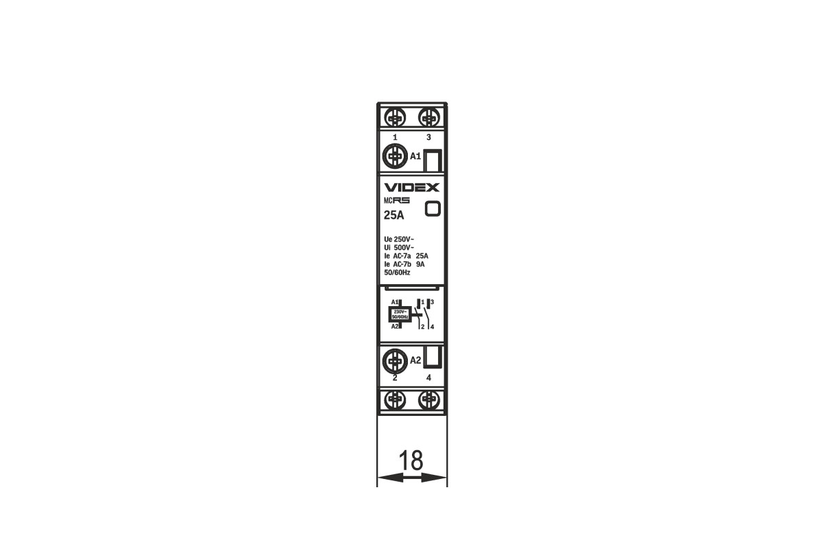 Модульный контактор 2п 25А 2НВ VF-RS-MC2O-25 VIDEX RESIST