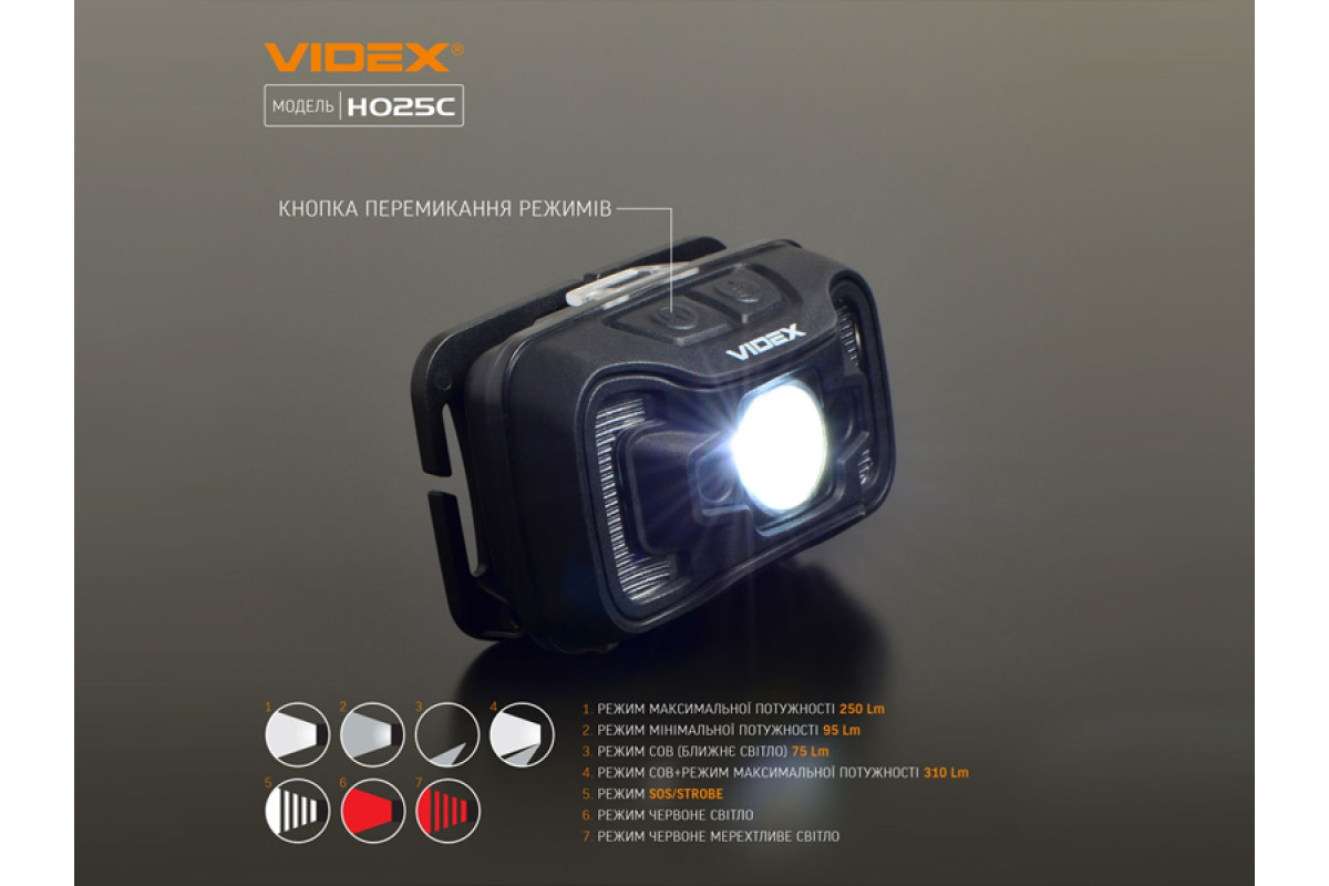 ❓ Как заказать Налобный светодиодный фонарик VIDEX VLF-H025C 310Lm 5000K с доставкой?