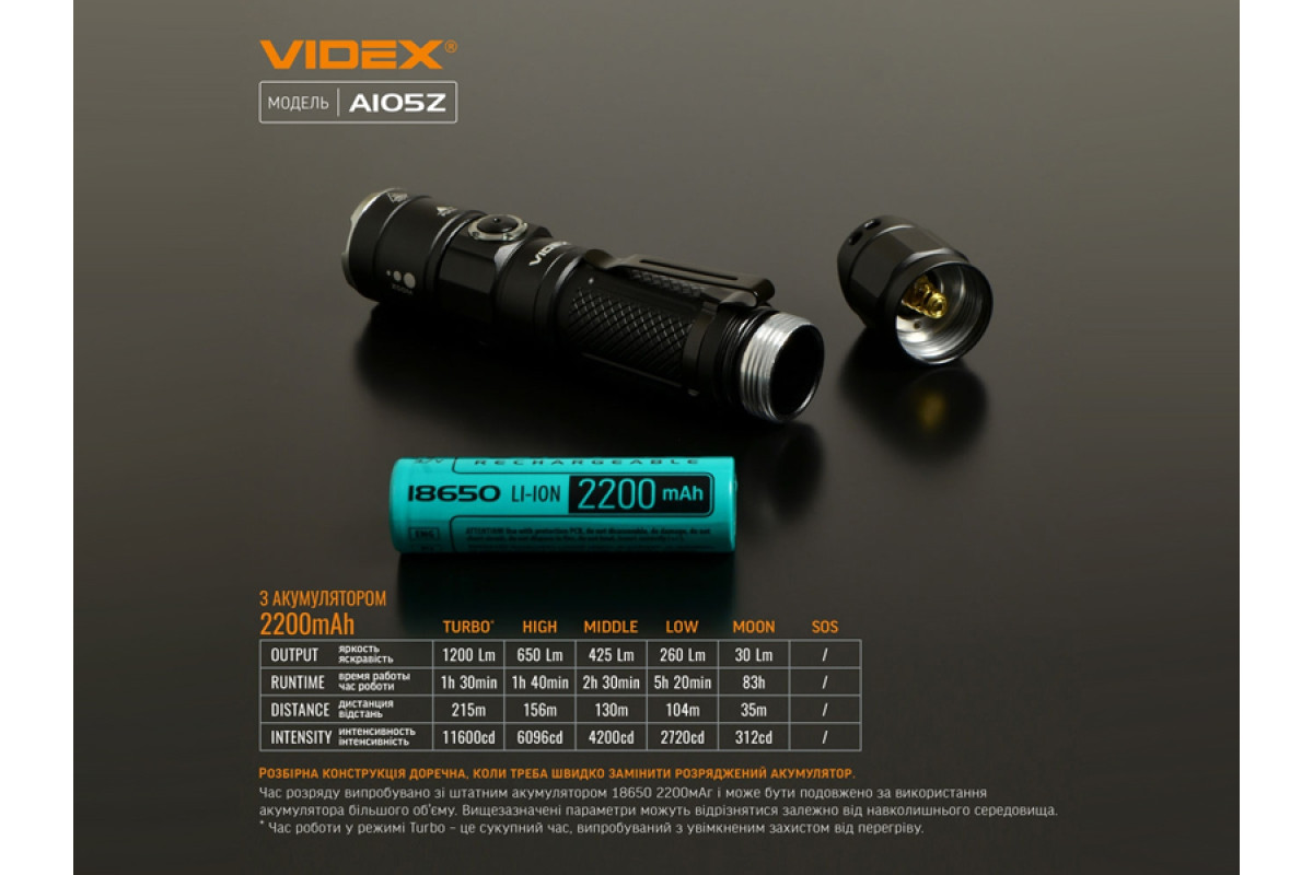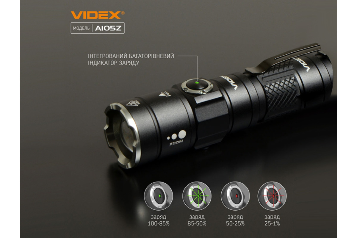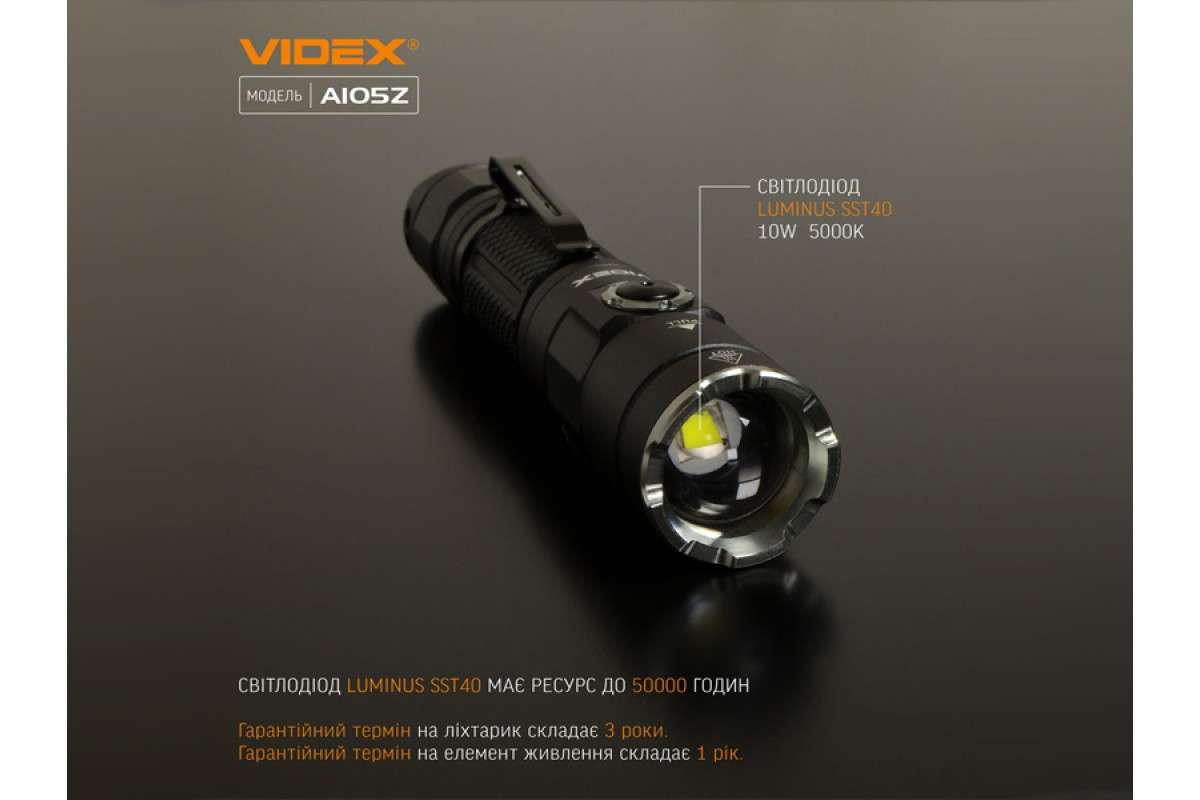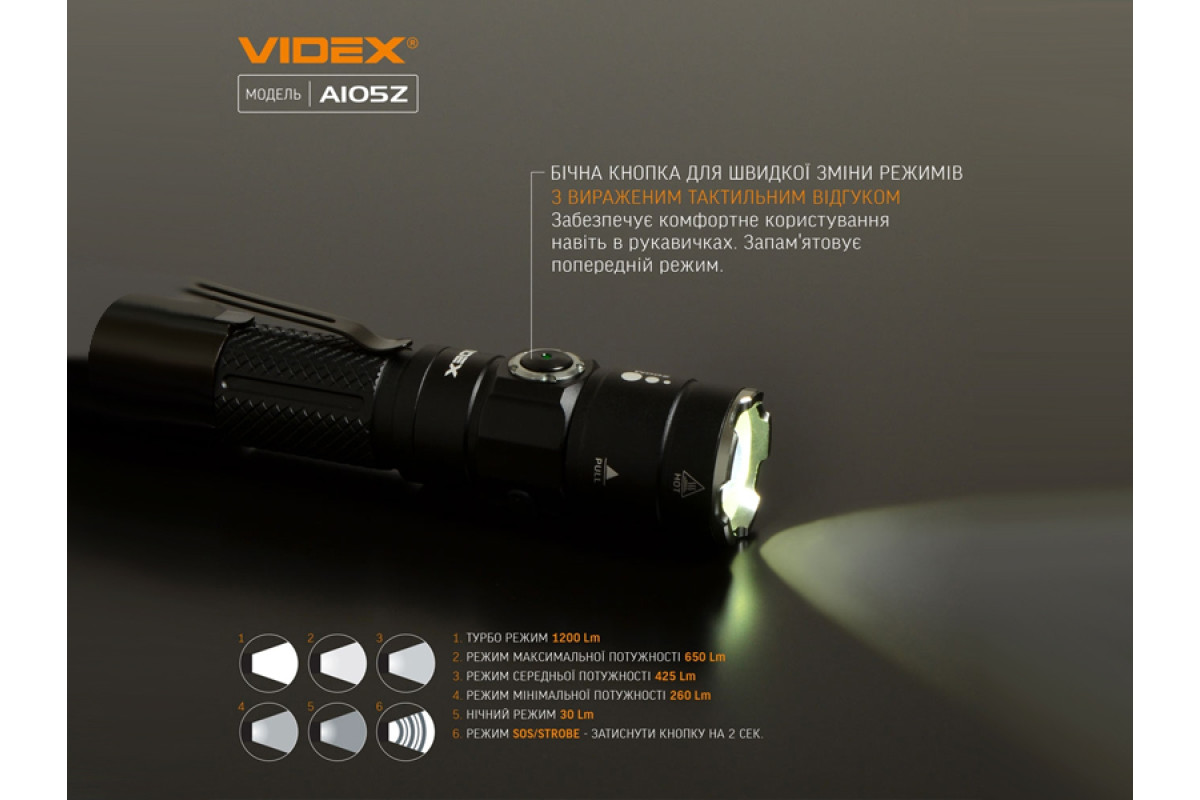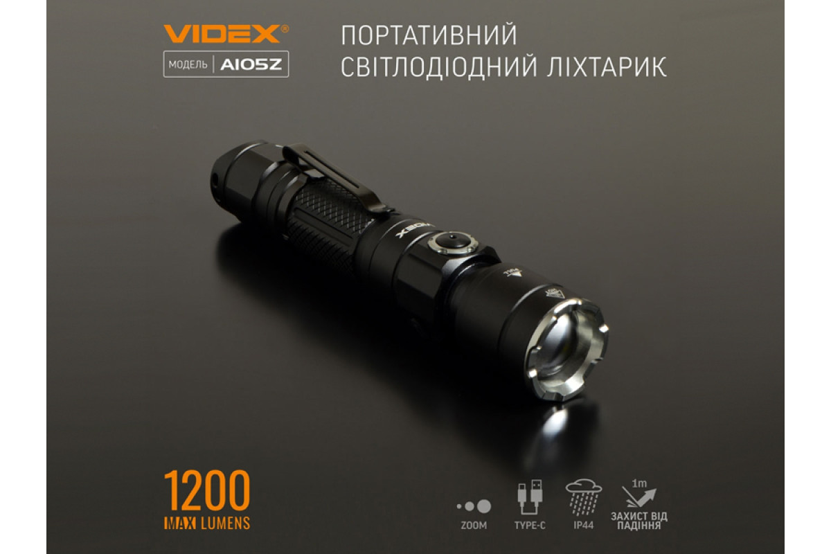 Портативный светодиодный фонарик VIDEX VLF-A105Z 1200Lm 5000K