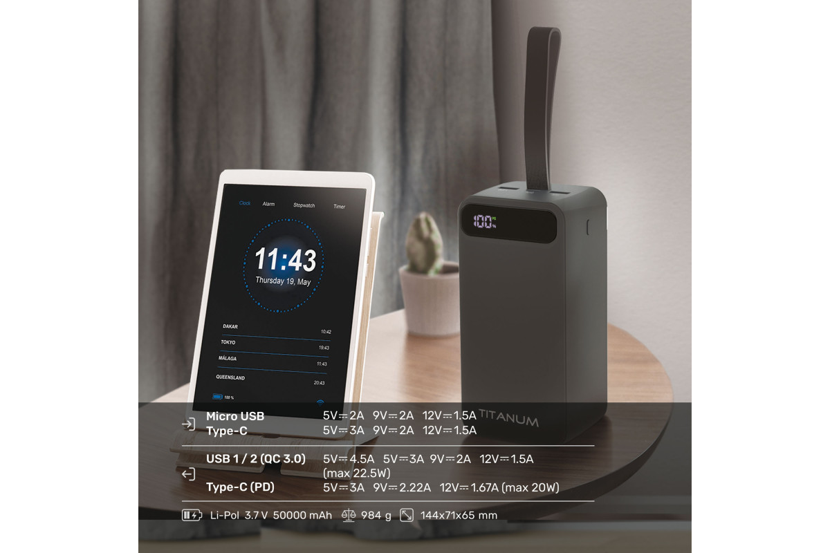 Повербанк 50000mAh TITANUM 741S 22.5W Black