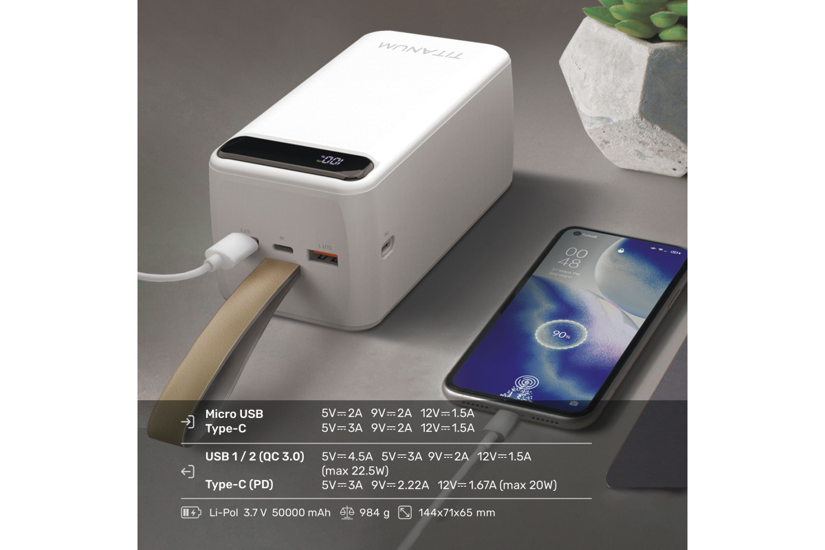 Повербанк 50000mAh TITANUM 741S 22.5W White
