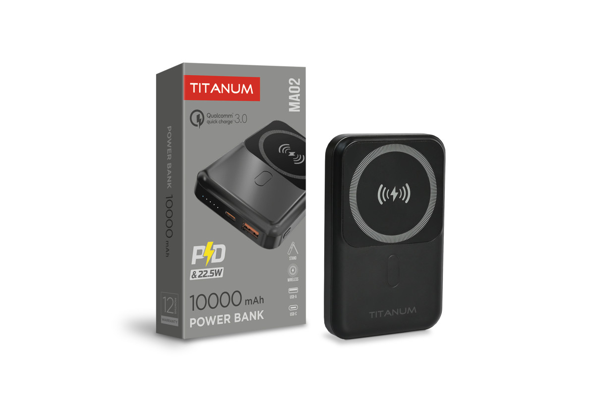 Повербанк с беспроводной зарядкой 10000mAh TITANUM MA02 22.5W Black