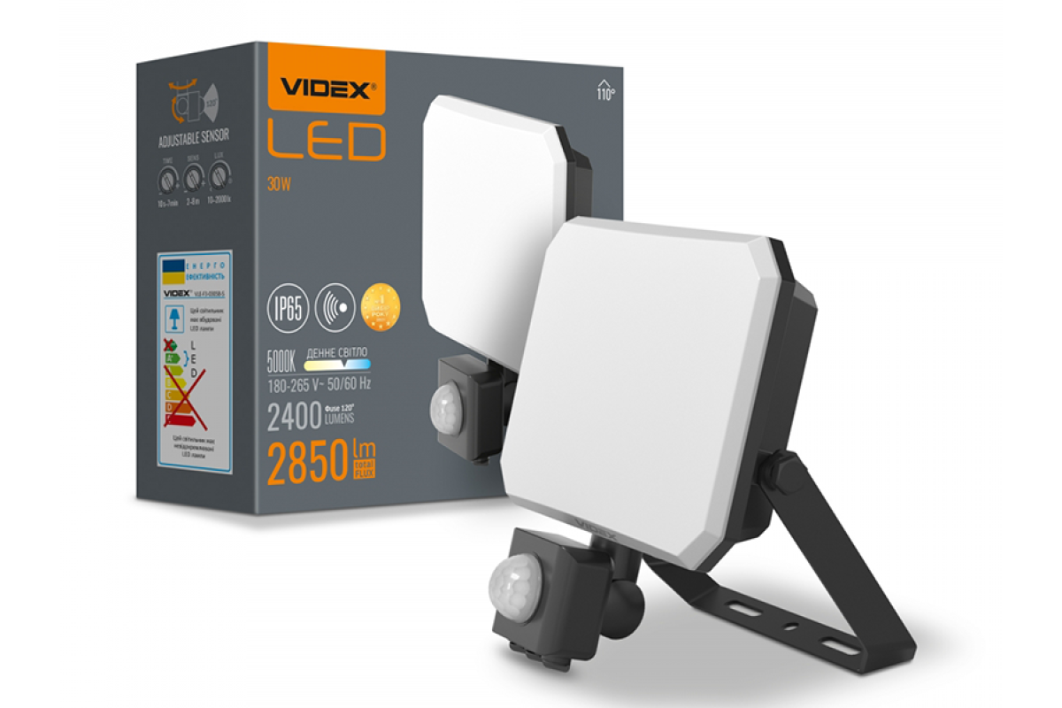 ❓ Как заказать Прожектор светодиодный VIDEX F3 с датчиком движения и освещенности 30W 5000K 220V Black (VLE-F3-0305B-S) с доставкой?