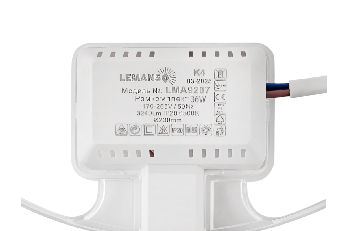 ❓ Кто производитель Ремкомплект светильника круг 36Вт на магнитах светильника 3240Lm 6500K D=230мм LMA9207 Лемансо?