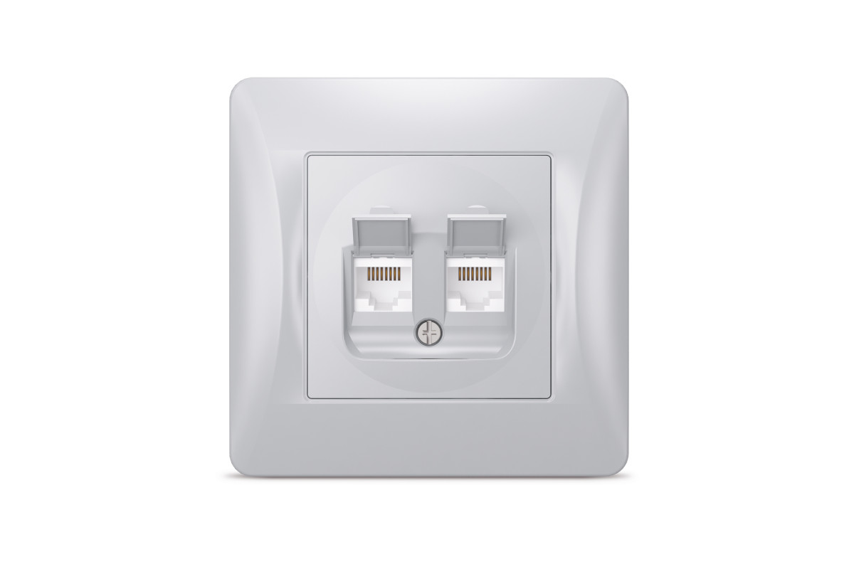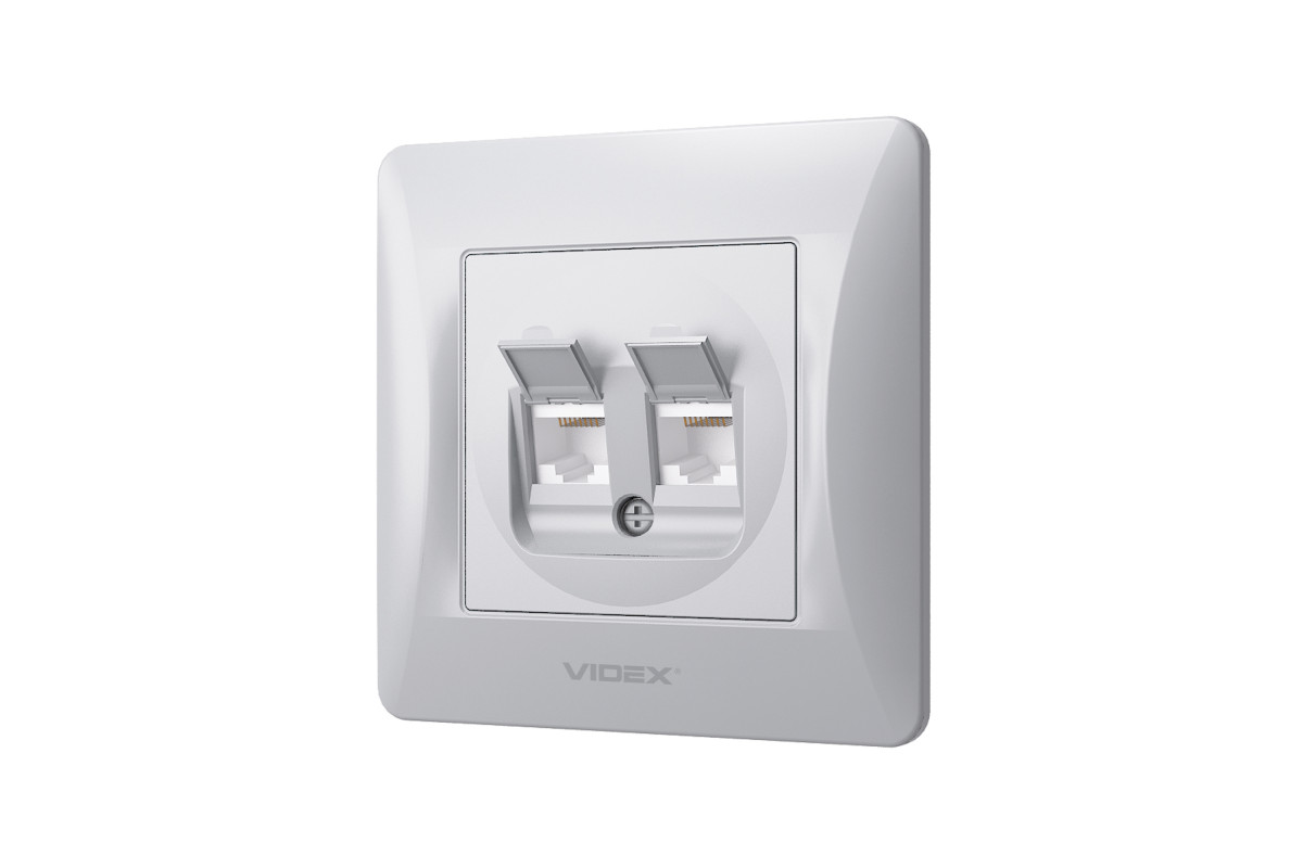 Розетка CAT6+CAT6 компьютерная двойная серебряный шелк VIDEX BINERA
