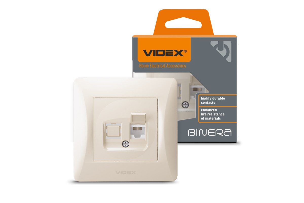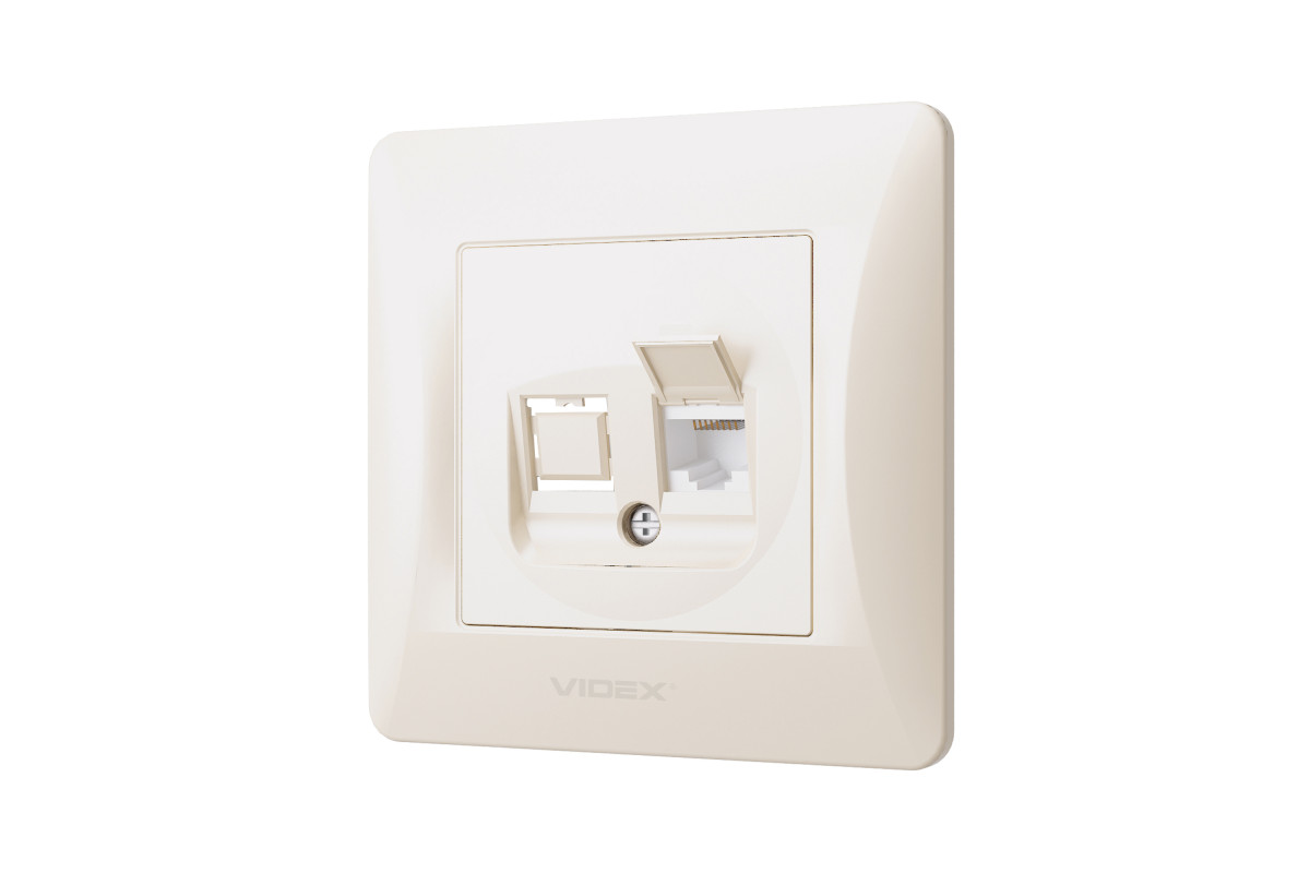 Розетка CAT6 одинарная компьютерная кремовая VIDEX BINERA