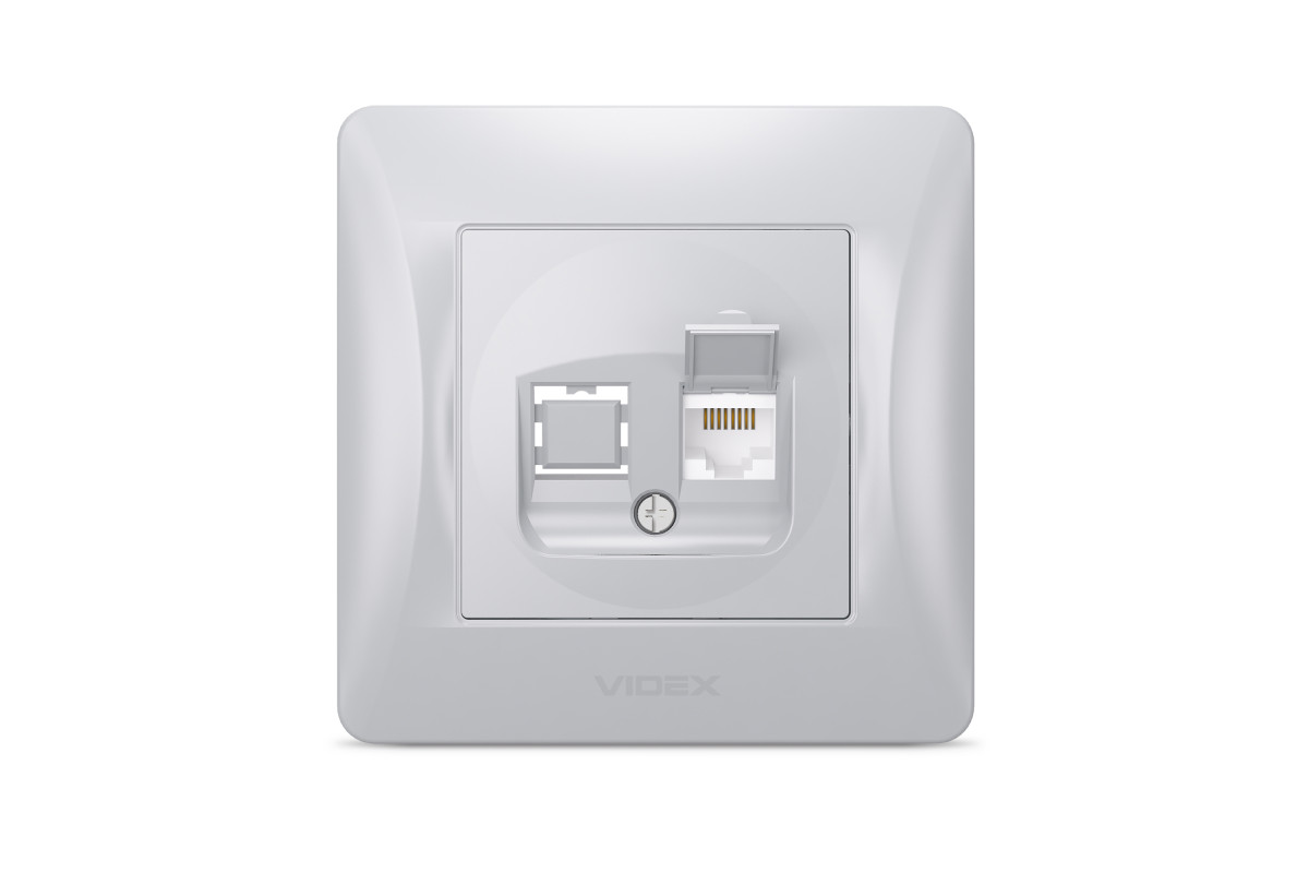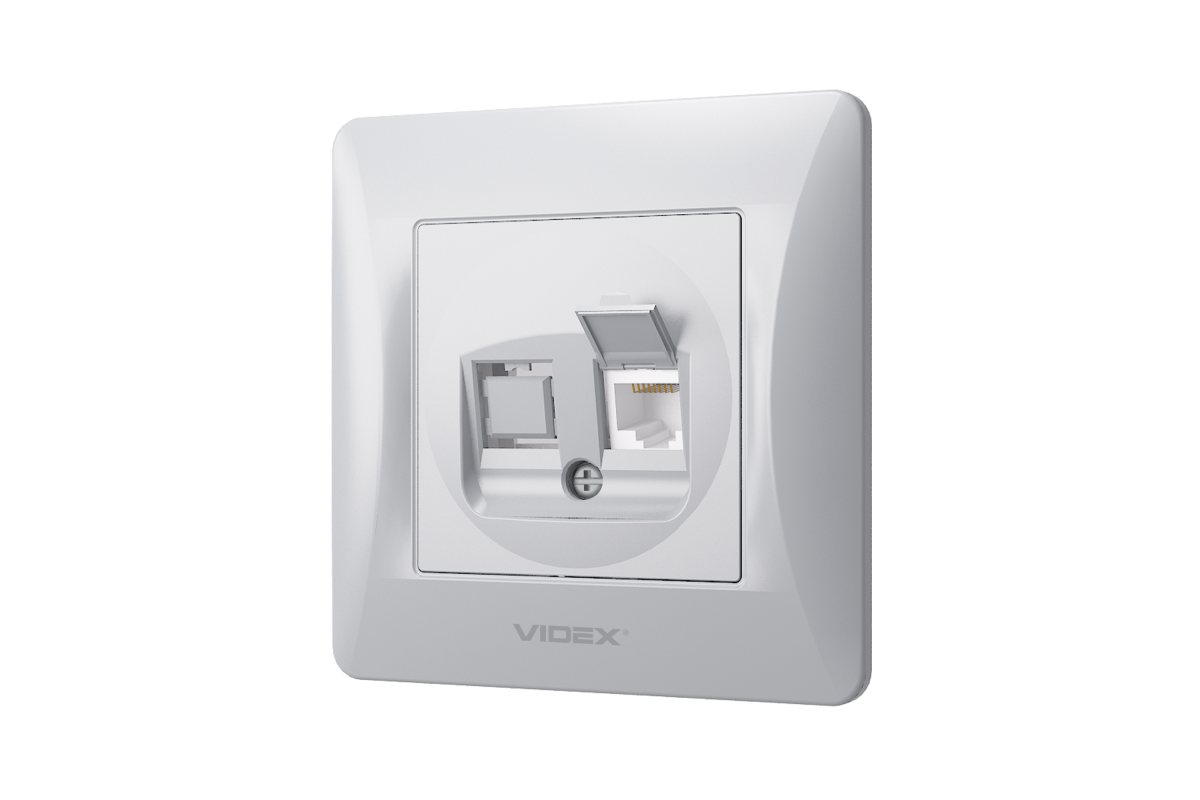 Розетка CAT6 одинарная компьютерная серебряный шелк VIDEX BINERA