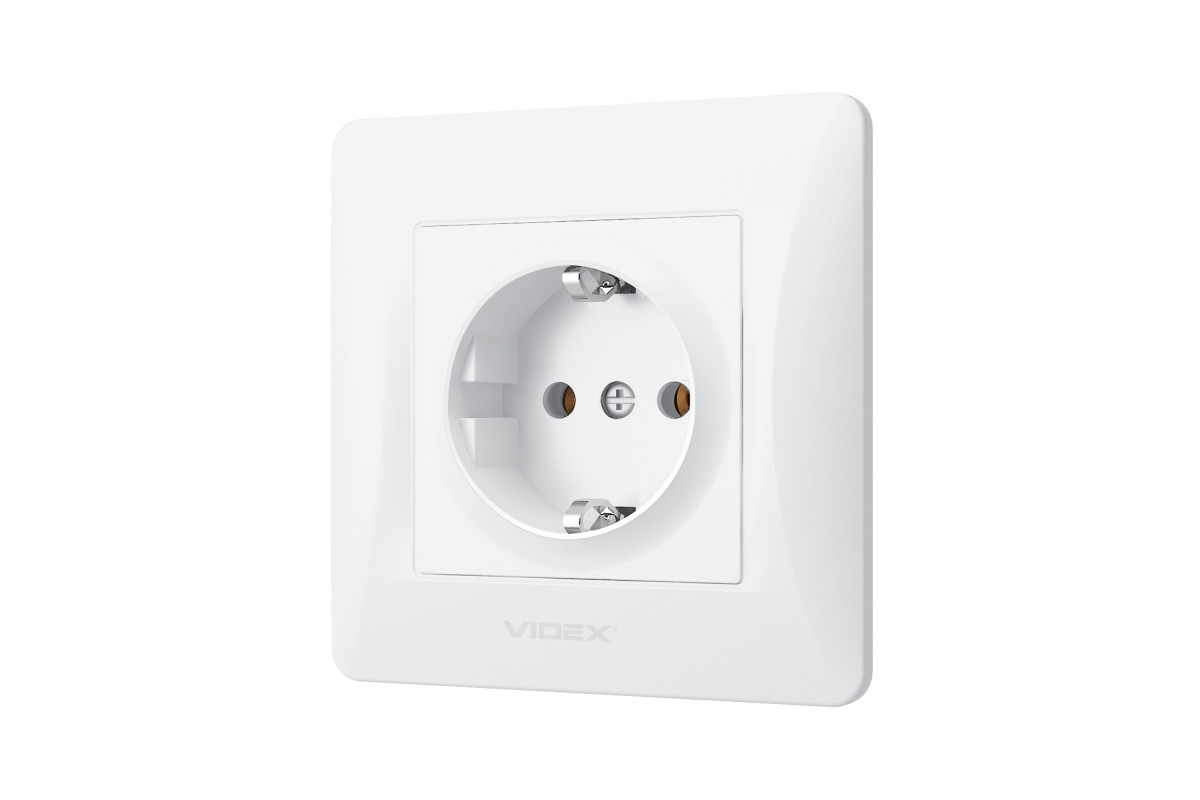 Розетка одинарная с заземлением белая VIDEX BINERA