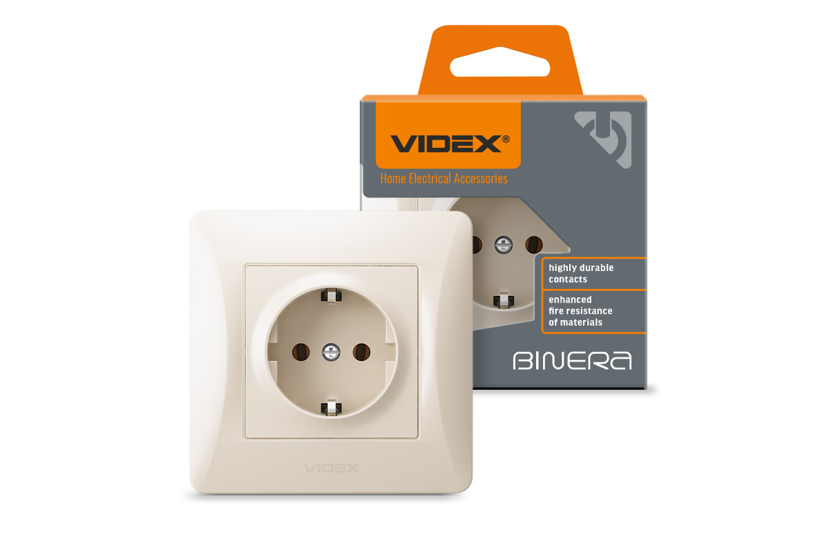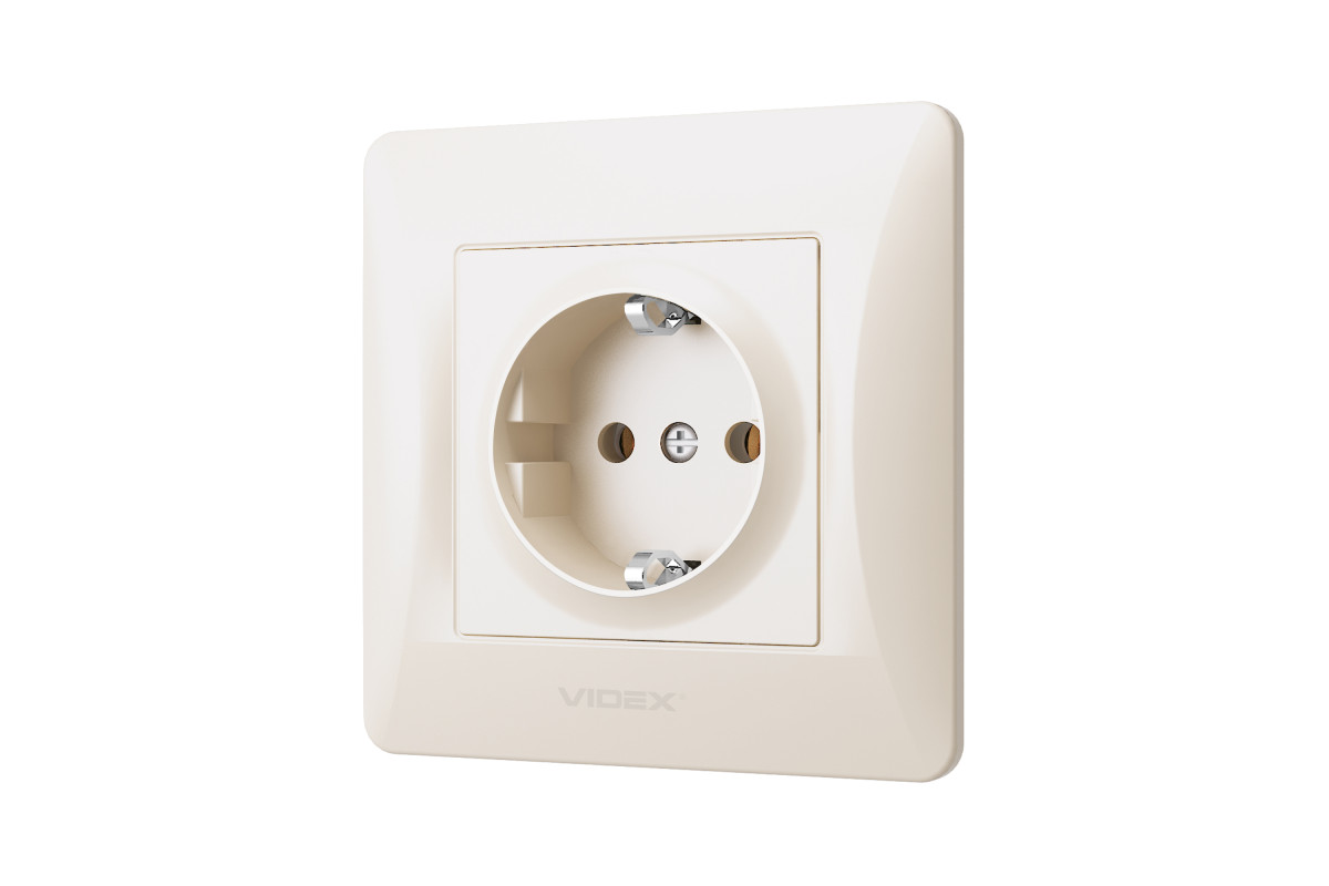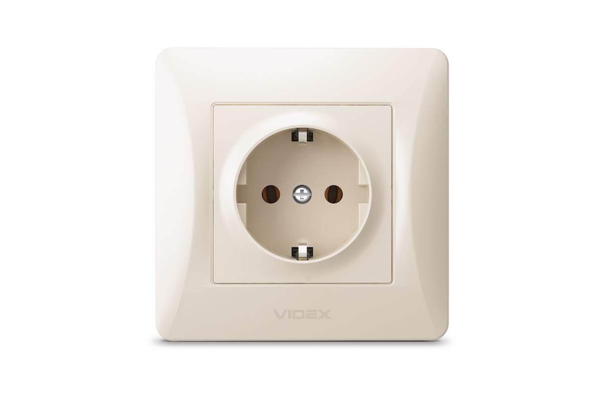 Розетка одинарная с заземлением кремовая VIDEX BINERA