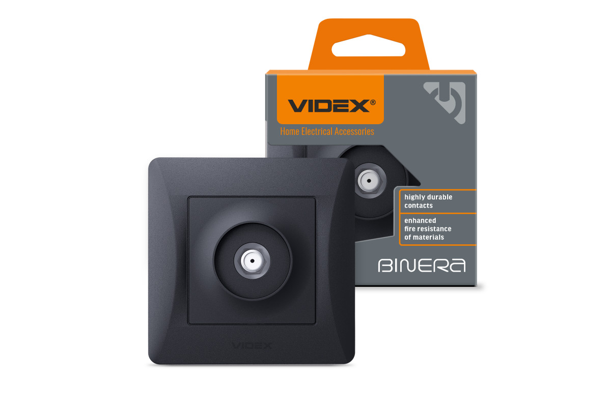 Розетка SAT одинарная спутниковая черный графит VIDEX BINERA