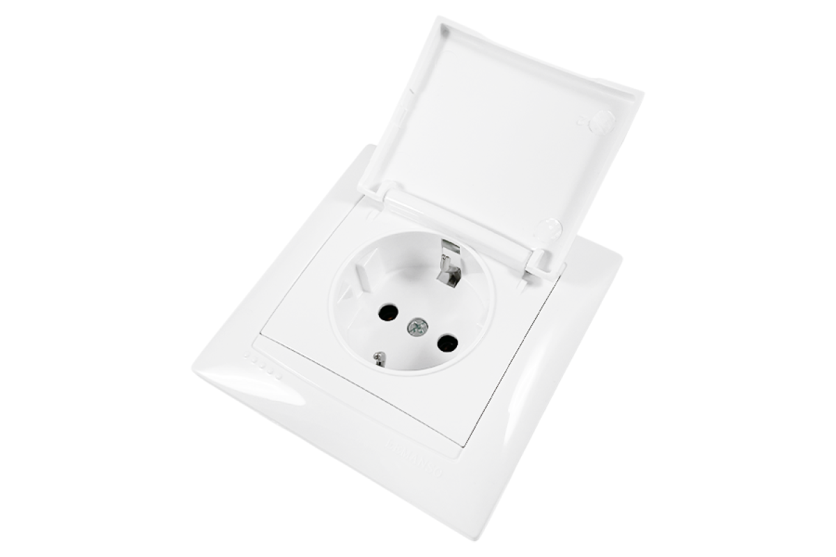 Розетка Lemanso Сакура с крышкой, с заземлением Белый (LMR1027)