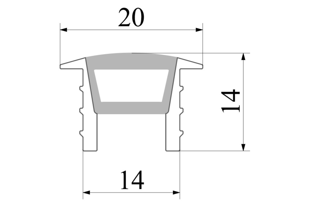 Силиконовый профиль для светодиодной ленты 14х20 1 метр врезной СП-23 IP67 без нити (100м в бабине) LEDUA