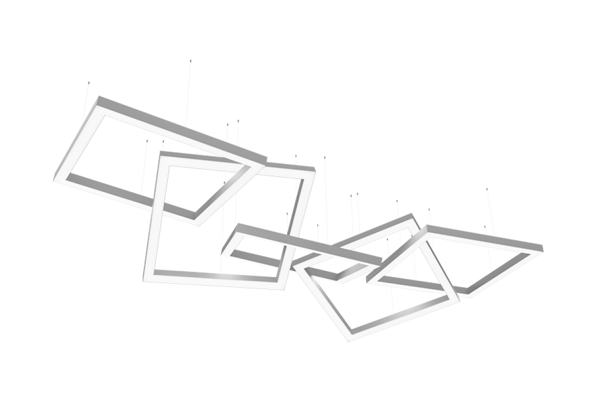 Светильник подвесной светодиодный, потолочный Квадра-цепь квадрат 110-240V 640W 17300lm 6500k 1000*1000*5 pcs, драйвер снаружи LEDUA