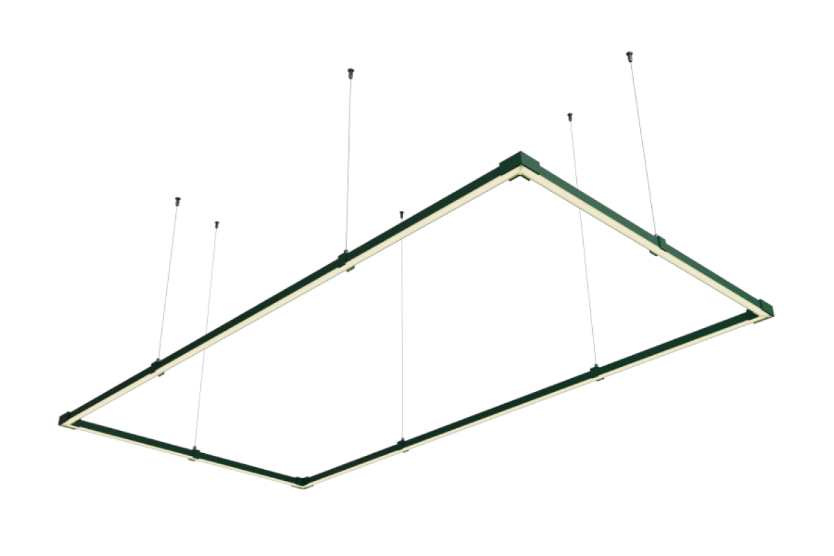 Светильник разборный подвесной светодиодный, потолочный Тетрагон мини прямоугольник 110-240V 48W 4500k 1000*2000 зеленый корпус LEDUA