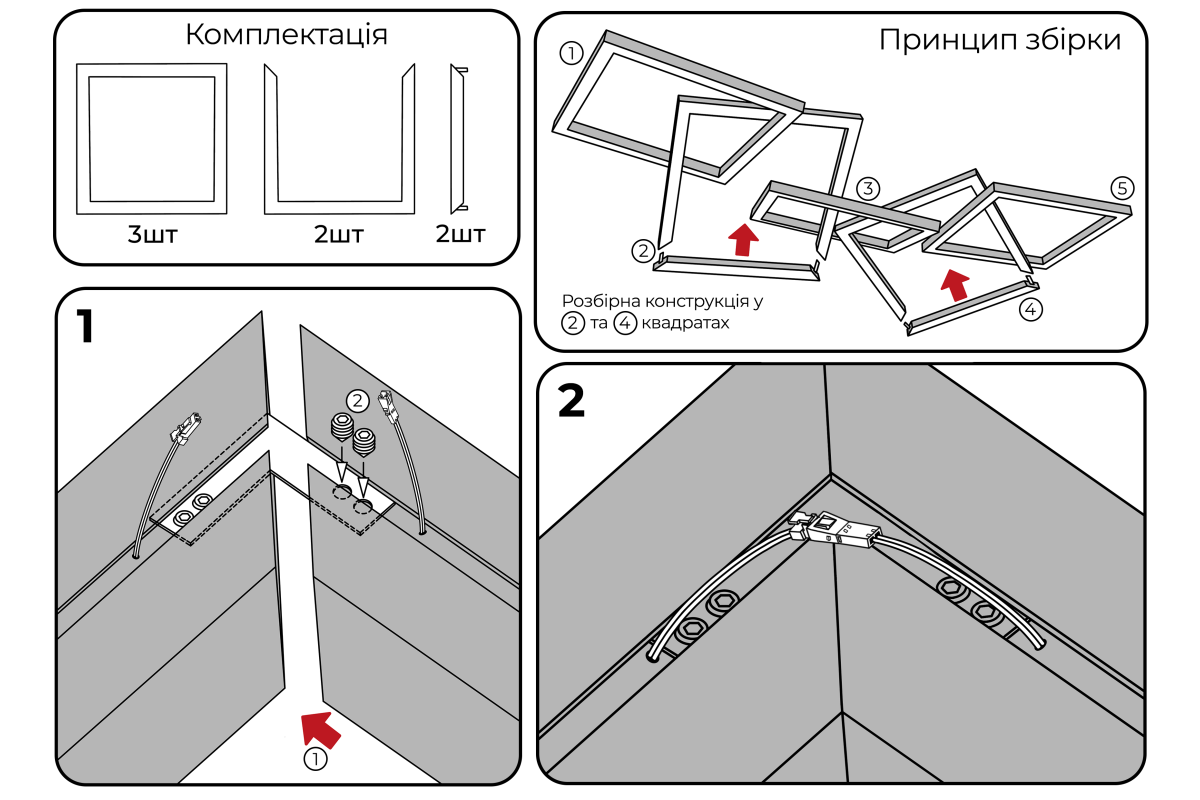 ❓ Как заказать Светильник светодиодный подвесной, потолочный Квадра-цепь квадрат 110-240V 640W 17300lm 6500k 1000*1000*5 pcs, черный корпус, драйвер снаружи LEDUA с доставкой?