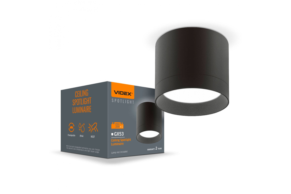 ❓ Как заказать Светильник VIDEX IP44 под лампу GX53 накладной Черный VL-SPF19A-B с доставкой?