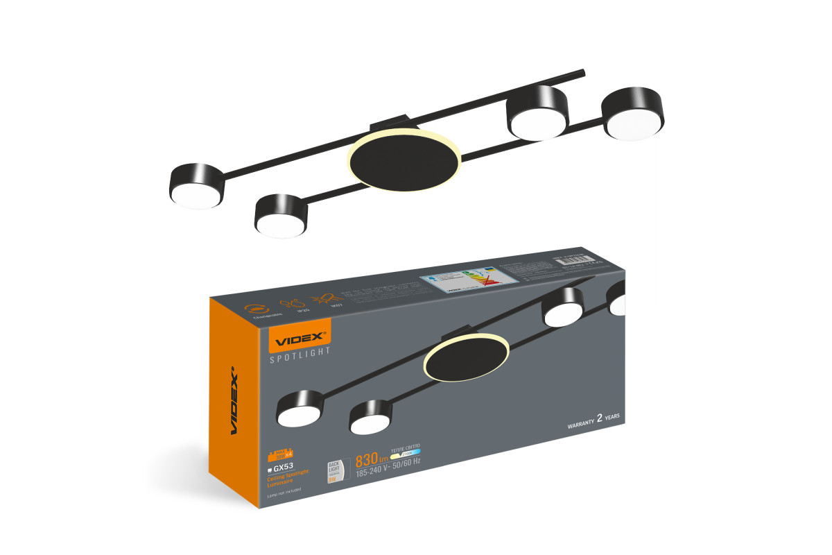 ❓ Кто производитель Светильник VIDEX под лампу 4xGX53 накладной с подсветкой Черный VL-SPF21B-BB?
