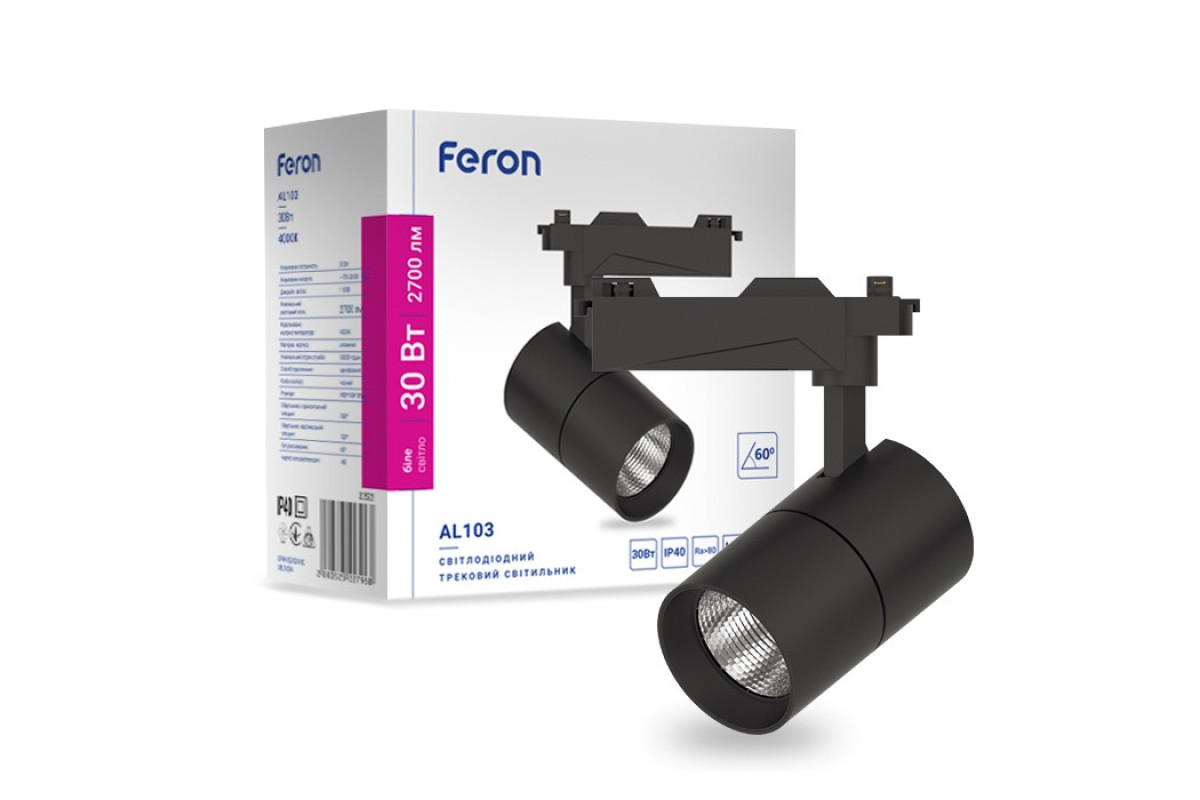 ❓ Как заказать Светодиодный трековый светильник Feron AL103 30Вт 4000K черный угол рассеяния 60 с доставкой?