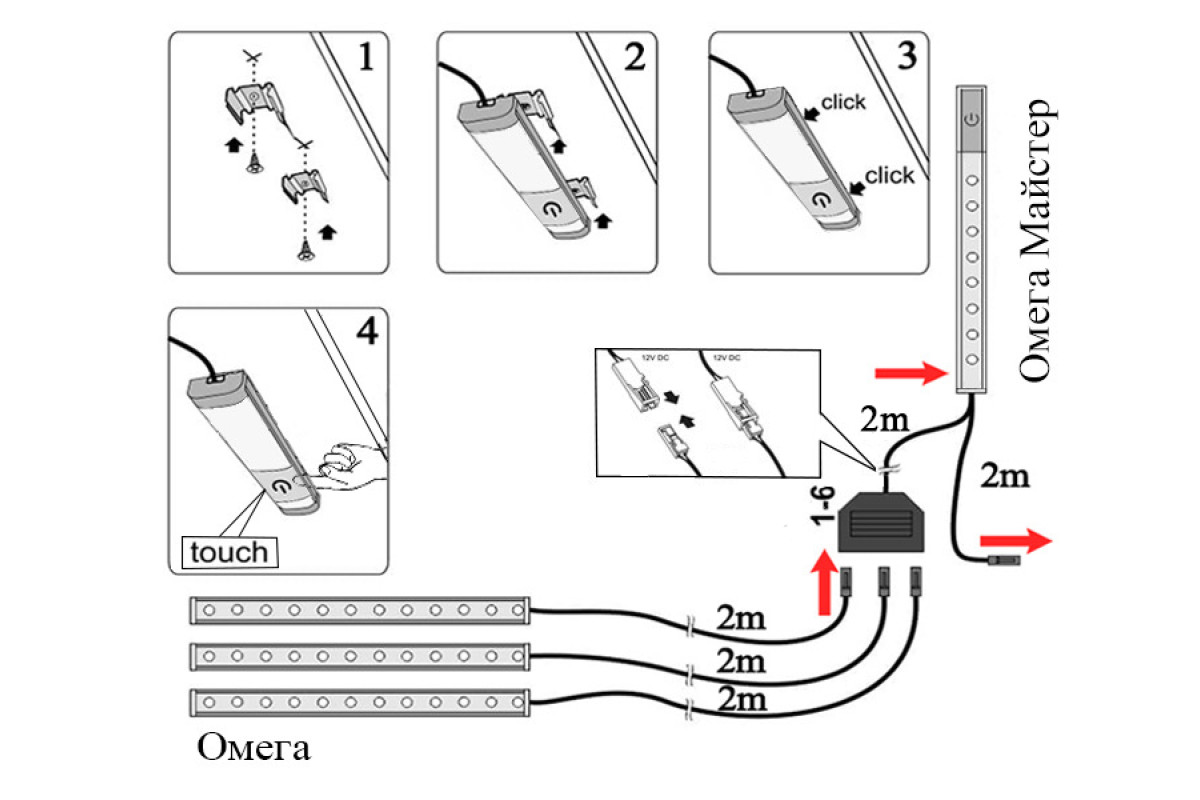 ❓ Как заказать Светильник светодиодный мебельный LEDUA Омега Мастер накладной 1100мм 12В 4500К с доставкой?